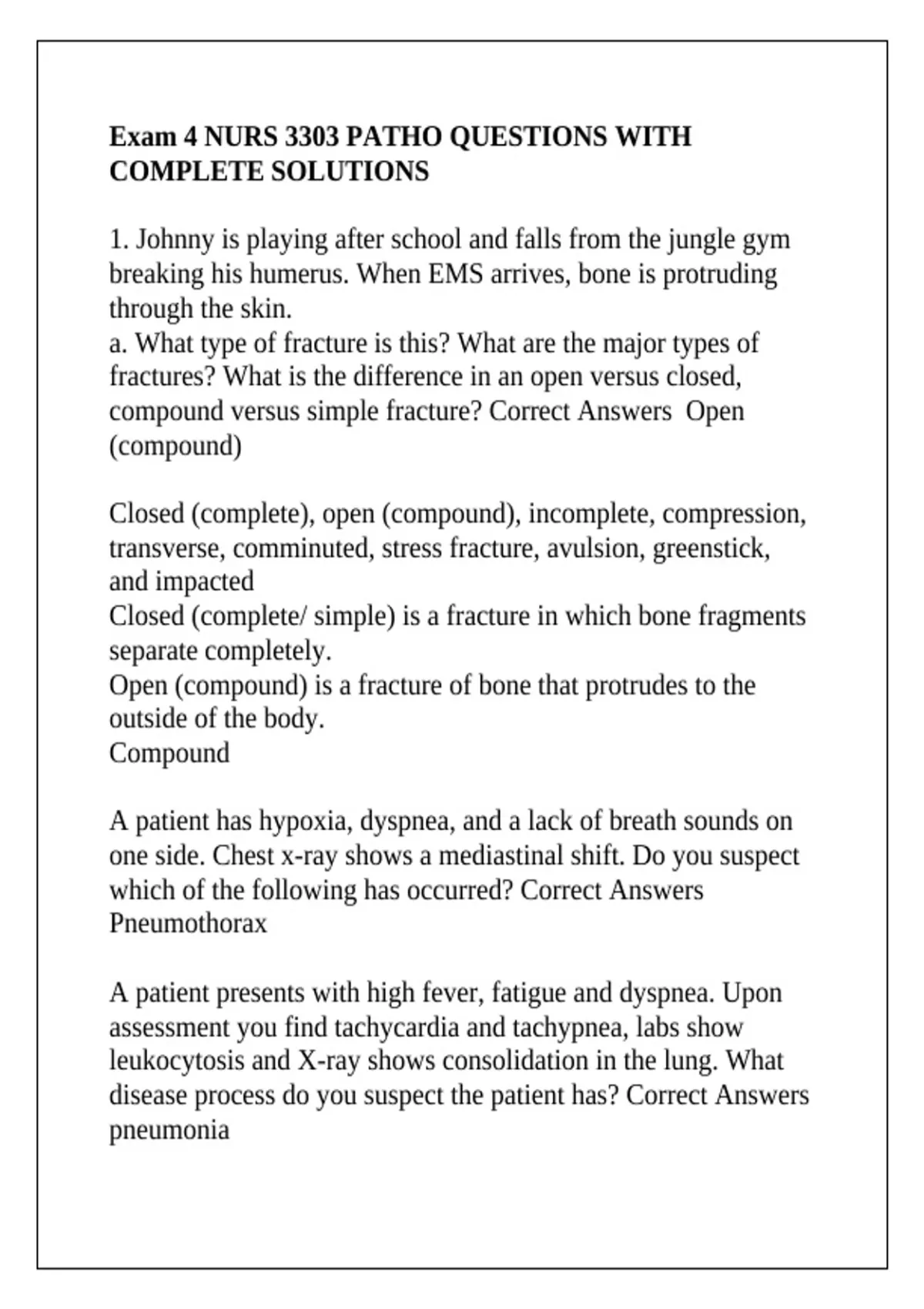 Exam 4 NURS 3303 PATHO QUESTIONS WITH COMPLETE SOLUTIONS