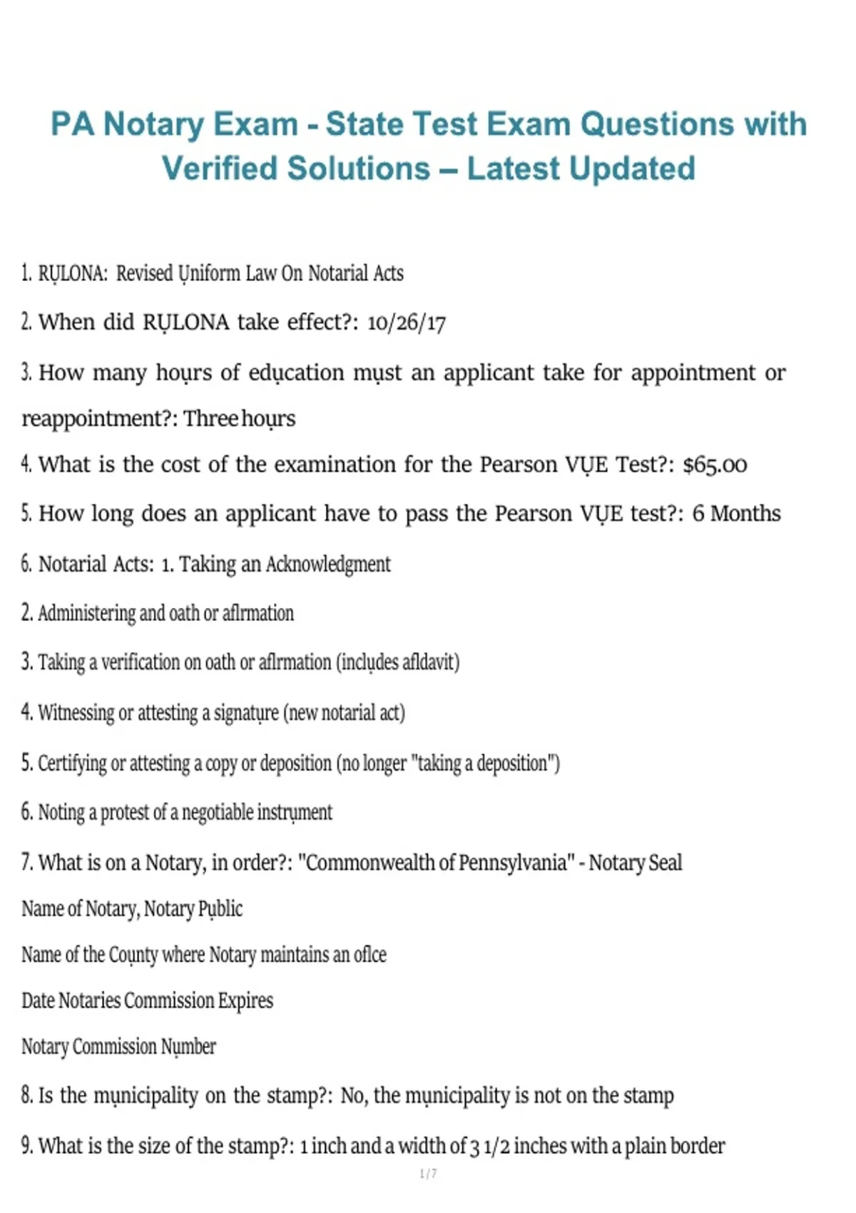 7. What is on a Notary, in order?: "Commonwealth of Pennsylvania" - Notary Seal