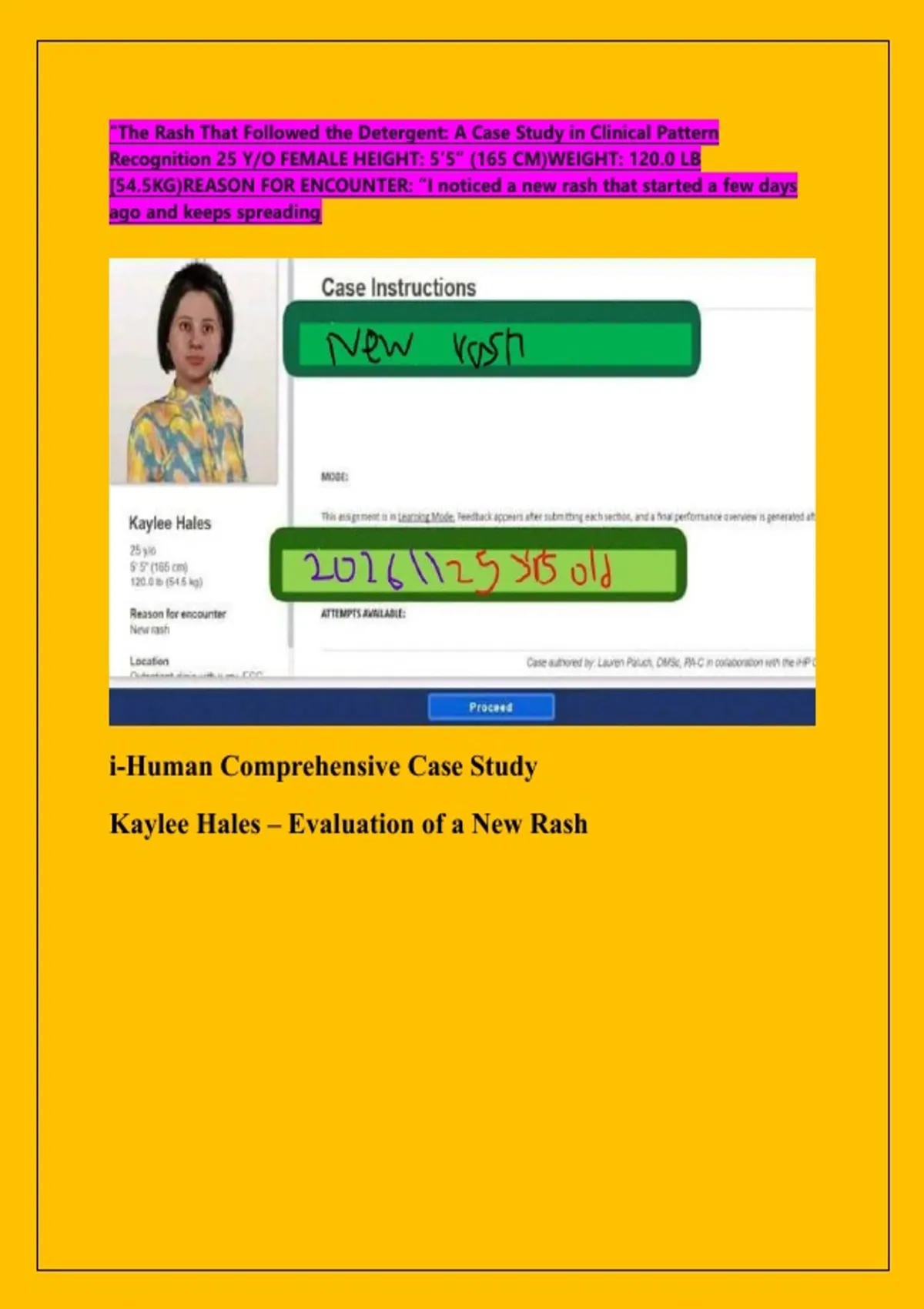 "The Rash That Followed the Detergent: A Case Study in Clinical Pattern Recognition 25 Y/O FEMALE HEIGHT: 5’5” (165 CM)WEIGHT: 120.0 LB [54.5KG)REASON FOR ENCOUNTER: “I noticed a new rash that started a few days ago and keeps spreading