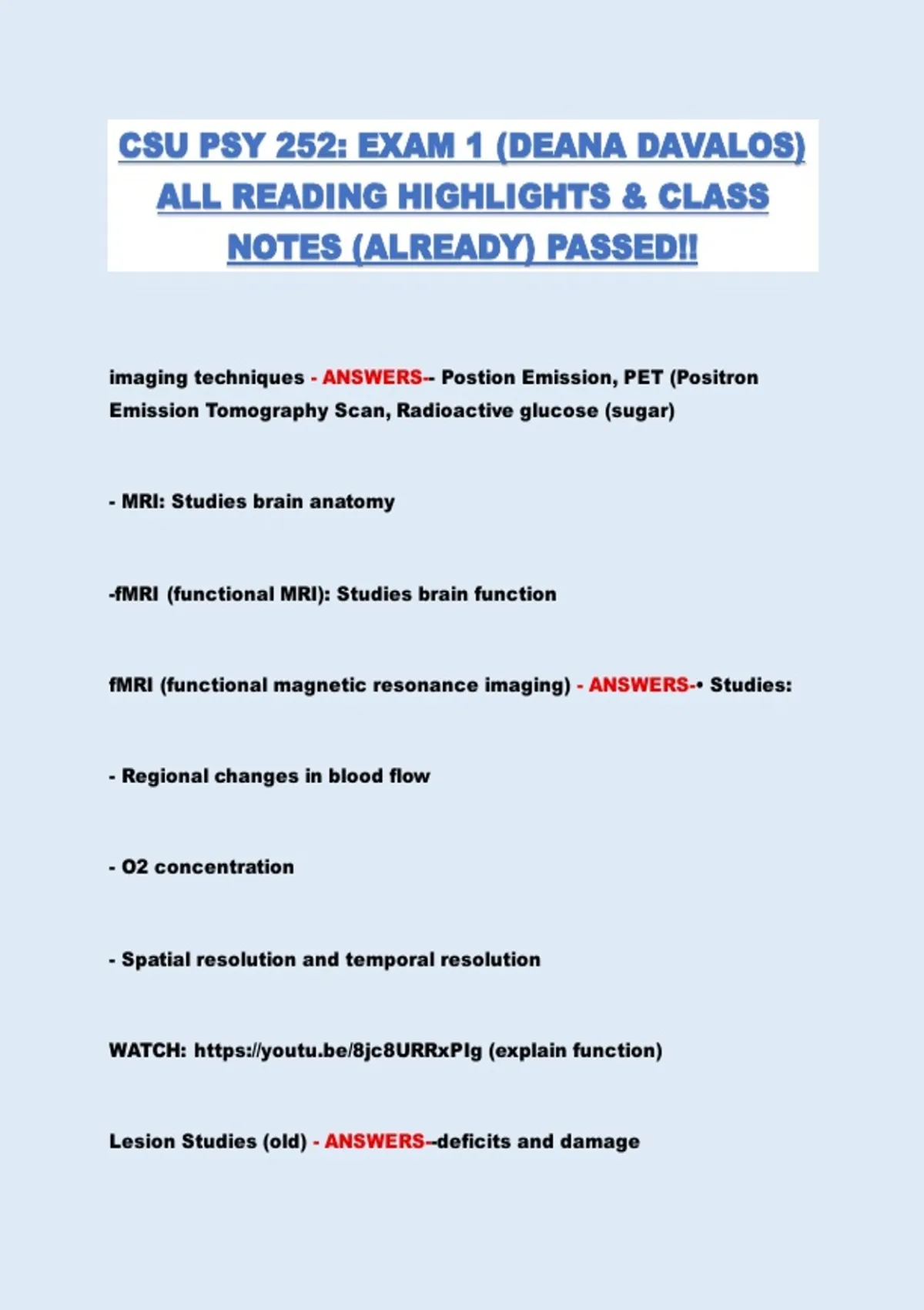 fMRI (functional magnetic resonance imaging) - ANSWERS-• Studies: