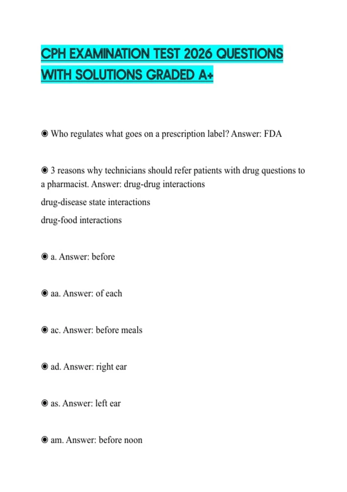 CPH EXAMINATION TEST 2026 QUESTIONS WITH SOLUTIONS GRADED A+
