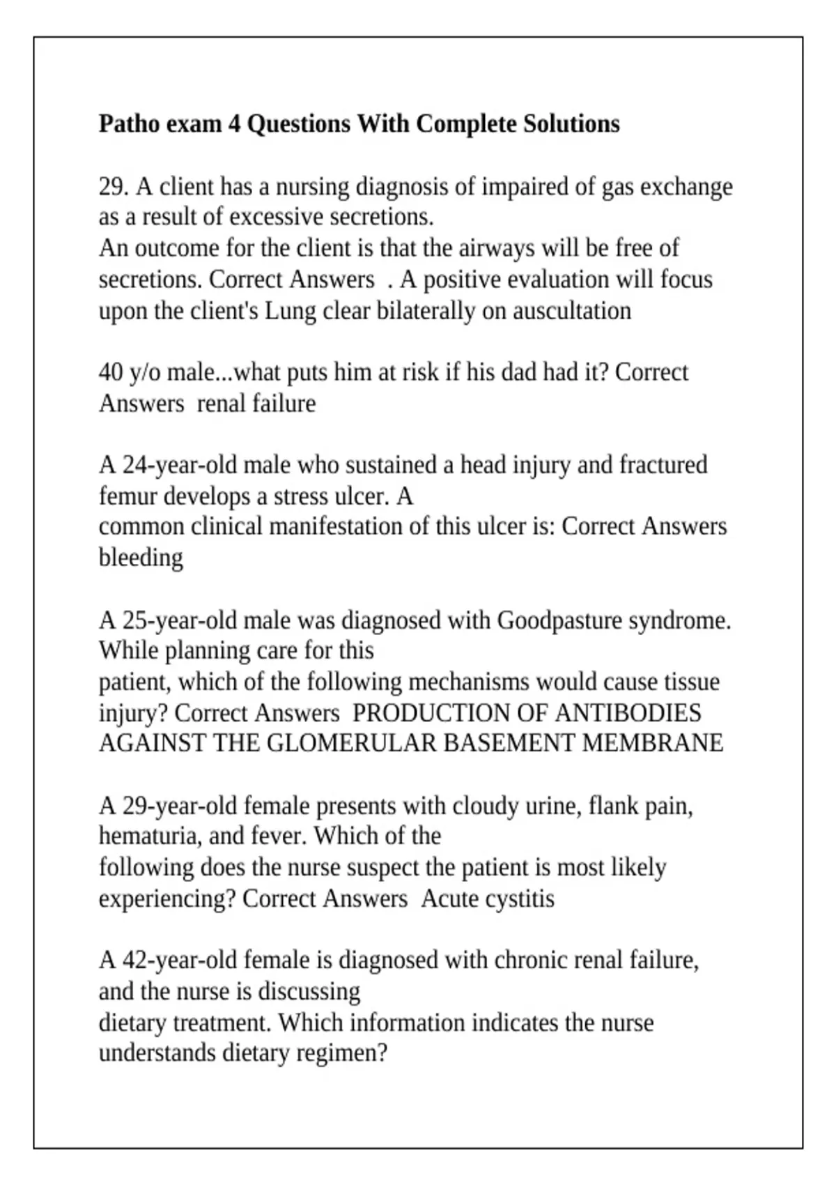Correct Answers Inadequate production of erythropoietin