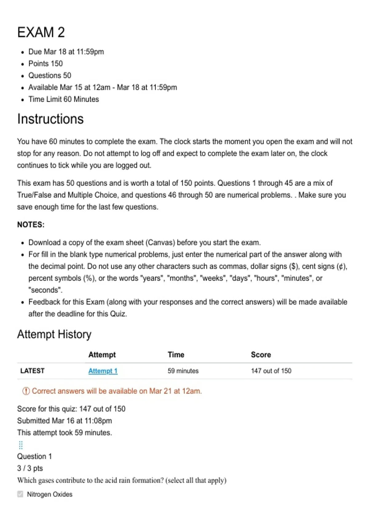 This exam has 50 questions and is worth a total of 150 points. Questions 1 through 45 are a mix of