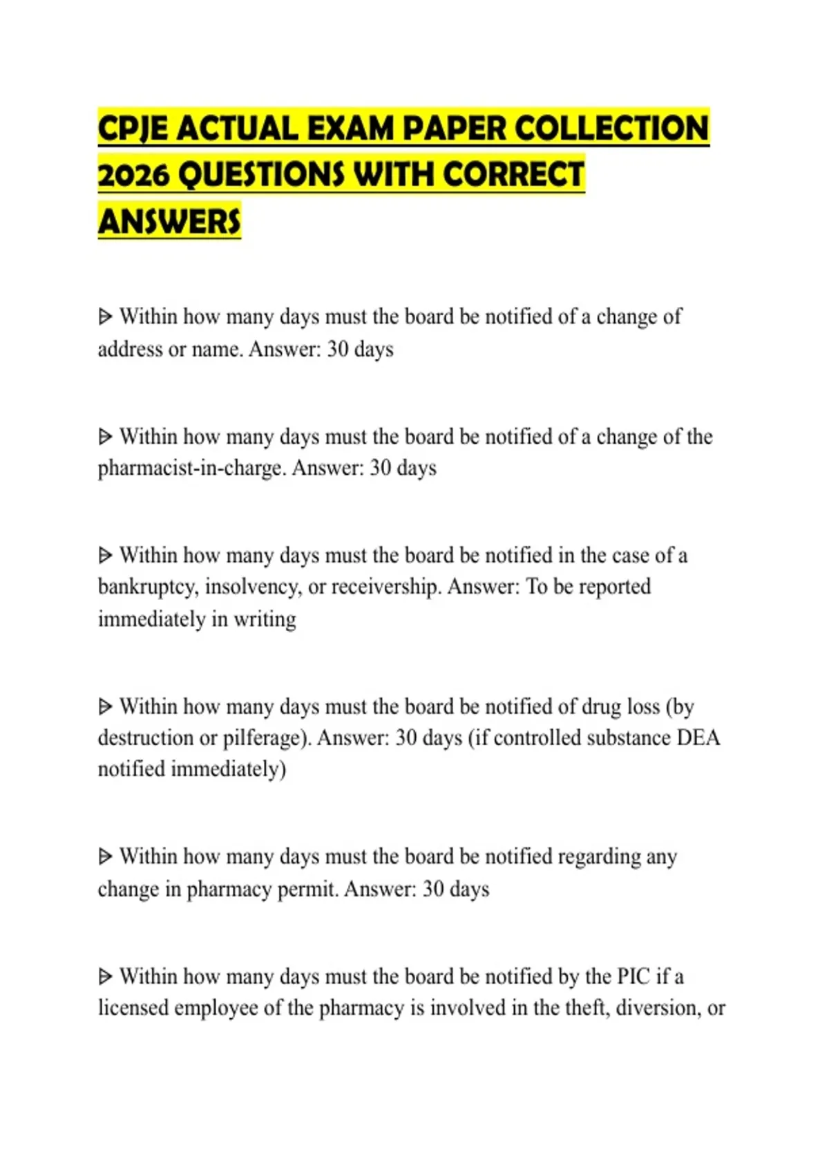 change in pharmacy permit. Answer: 30 days