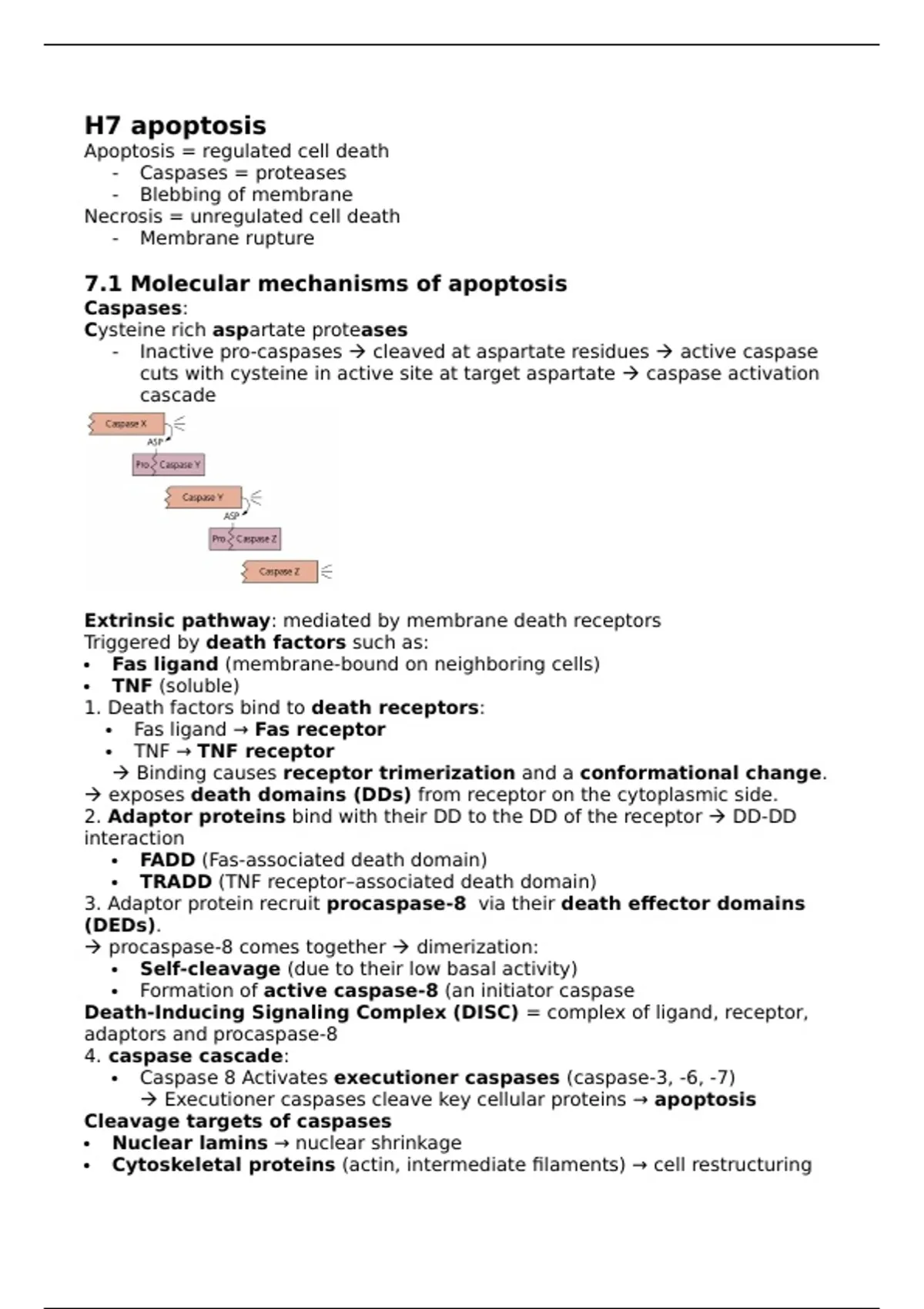 - Inactive pro-caspases  cleaved at aspartate residues  active caspase