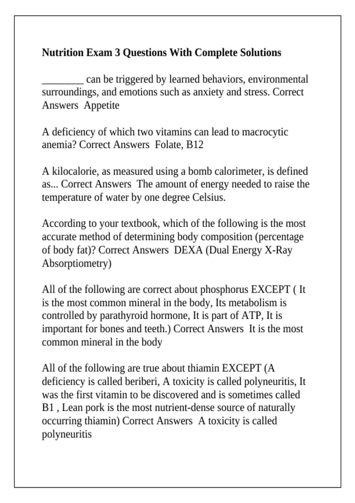 of body fat)? Correct Answers DEXA (Dual Energy X-Ray