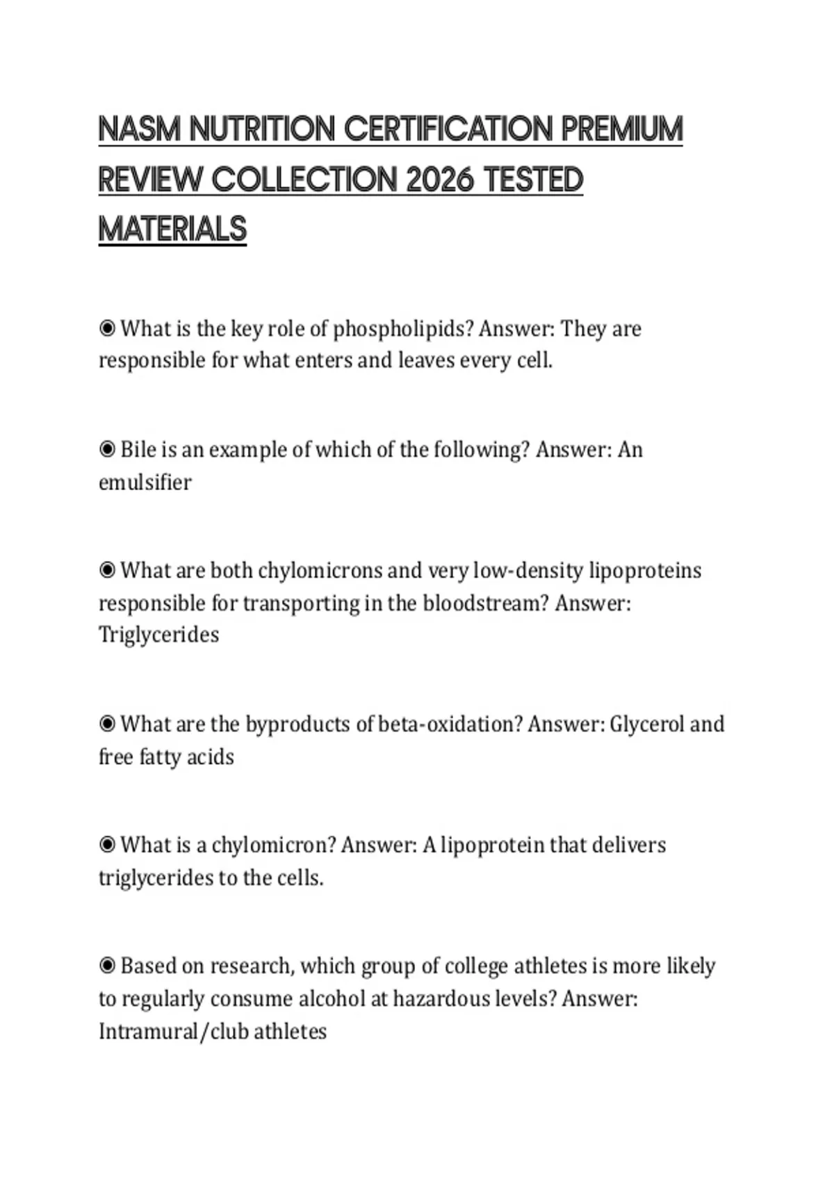 NASM NUTRITION CERTIFICATION PREMIUM REVIEW COLLECTION 2026 TESTED MATERIALS