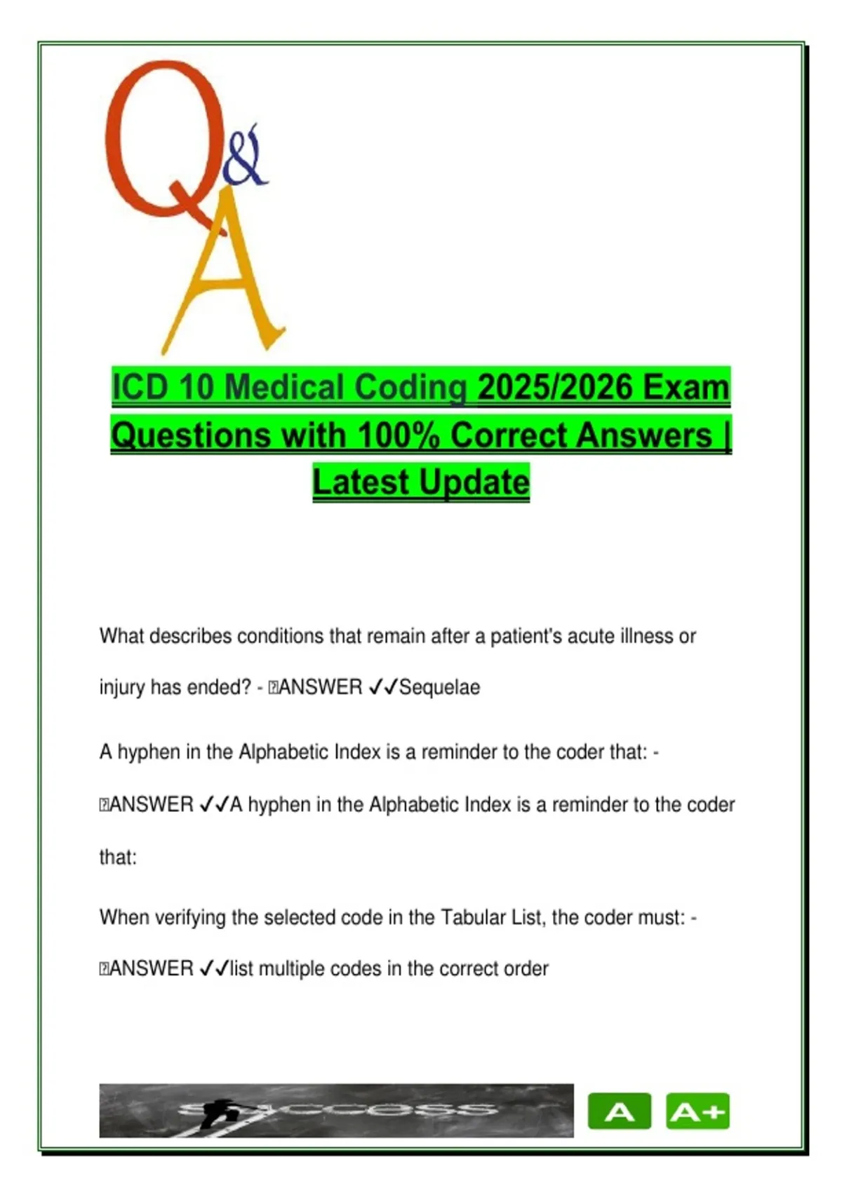 🧠ANSWER ✔✔A hyphen in the Alphabetic Index is a reminder to the coder
