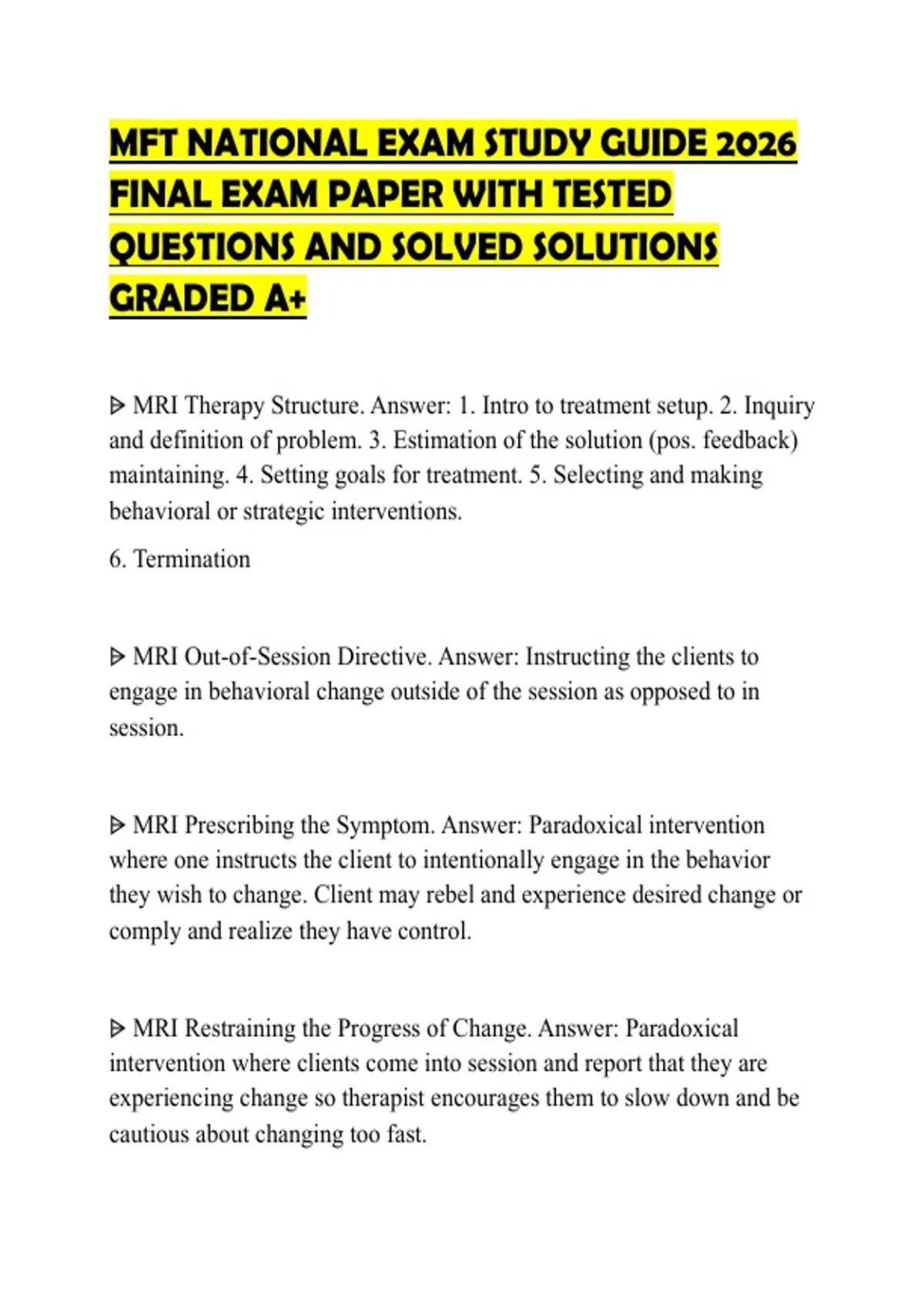 MFT NATIONAL EXAM STUDY GUIDE 2026 FINAL EXAM PAPER WITH TESTED QUESTIONS AND SOLVED SOLUTIONS GRADED A+