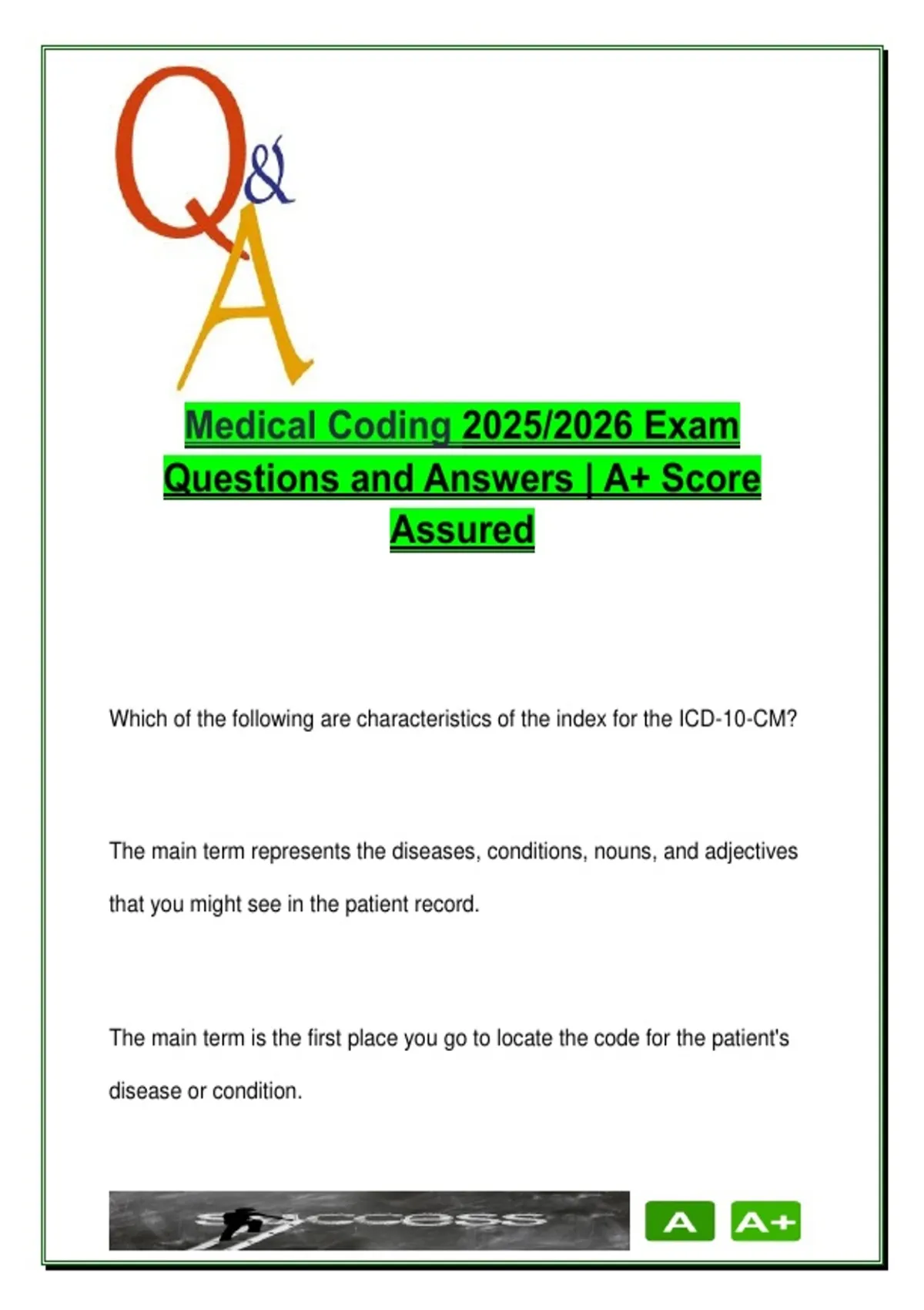 This detailed exam guide features over 100 expert-verified questions and answers, covering all major areas of medical coding for students and professionals preparing for certification exams in 2025/2026. Designed for real-world relevance, this resource spans both outpatient and inpatient coding, with special attention to diagnostic and procedural coding systems, compliance, and reimbursement documentation. Topics comprehensively addressed include: ICD-10-CM and ICD-10-PCS: Code structure, chapter hierarchy, main terms, specificity, laterality, excludes notes, Z-codes, sequelae, and root operations for inpatient procedures CPT coding: Evaluation & Management (E/M), surgery sections, anesthesia modifiers (P1–P6), code symbols (triangle, bullet), panel reporting, and use of unlisted codes HCPCS Level II: J-codes for non-orally administered drugs, supply/equipment reporting, and services outside the CPT code range Modifiers and surgical packages: Correct modifier use (-24, -51, -52, -81), global periods, bundled services, and surgical follow-up Medical necessity & documentation: SOAP notes, appropriate diagnosis-procedure linkage, and accurate code sequencing Regulatory compliance: HIPAA Privacy Rule, coding fraud vs. abuse, the role of CMS, AAPC, and AHIMA in industry ethics and oversight Specialty coding: Obstetrics, dermatology, neurology, psychiatry, ENT, endocrine, and GI procedures with appropriate CPT codes Diagnostic and procedural tools: Use of Alphabetic Index, Tabular List, CPT appendices, ICD-10-PCS Tables and Index, and coding based on site, service, and condition This resource is perfect for: Students in medical coding, billing, HIT, and HIM programs Candidates preparing for CPC, CCS, CBCS, or CCA exams Instructors developing assessments or training material Coders seeking a refresher on ethics, compliance, or multi-setting procedure coding Its well-organized Q&A structure ensures fast recall, deep understanding, and practical application across all domains of professional medical coding. Keywords: ICD-10-CM, ICD-10-PCS, CPT, HCPCS, coding exam, medical necessity, surgical modifiers, SOAP format, reimbursement, inpatient coding, outpatient coding, compliance, Z codes, sequencing rules, anesthesia coding, CMS, AAPC, AHIMA, medical ethics, procedural coding