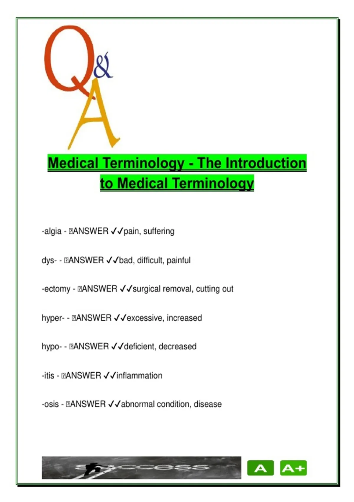 This document offers an in-depth, structured overview of over 70 foundational terms in medical terminology, including prefixes, suffixes, root words, and full medical terms with definitions. Covering essential elements such as -algia (pain), -ectomy (surgical removal), hyper- (excessive), itis (inflammation), and complex terms like neonatology, otorhinolaryngology, and poliomyelitis, this material builds a complete understanding of how medical words are constructed and used. The format is optimized for both active recall and quick reference, with each term clearly matched to its meaning. Definitions are accurate and concise, aiding in both memorization and deeper comprehension. This document is especially relevant for students enrolled in BIO 110 – Introduction to Medical Terminology, or those in first-year courses across the health sciences, nursing, pre-med, public health, pharmacy, radiology, physiotherapy, and allied health programs. It also serves as a practical guide for anyone preparing for entrance exams, medical certifications, or clinical work requiring fluent understanding of medical vocabulary. Whether you're just starting out or need a complete revision tool, this document provides a solid foundation for mastering medical language. Keywords: medical terminology, BIO 110, word parts, prefixes, suffixes, root words, healthcare vocabulary, nursing, anatomy, physiology, pre-med, medical language, exam prep, clinical terms, health science, allied health