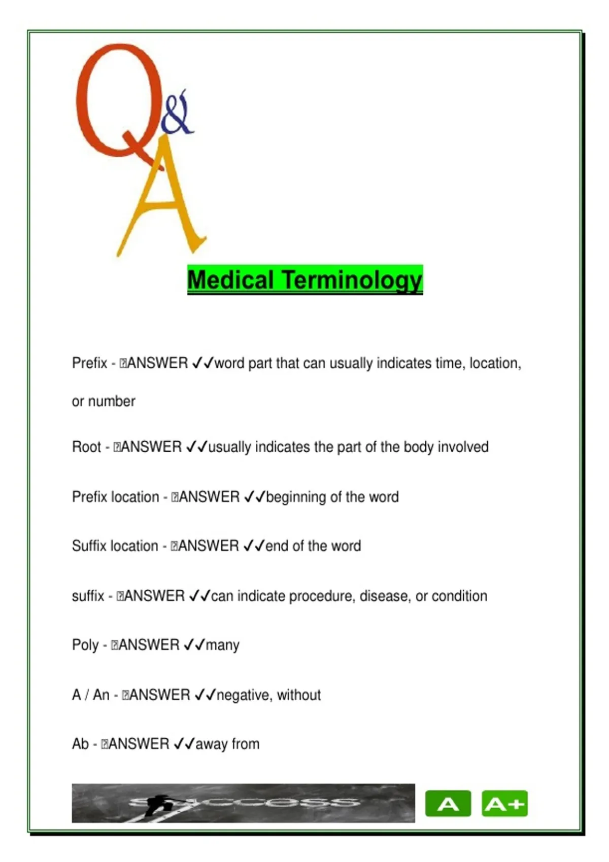 Root - 🧠ANSWER ✔✔usually indicates the part of the body involved