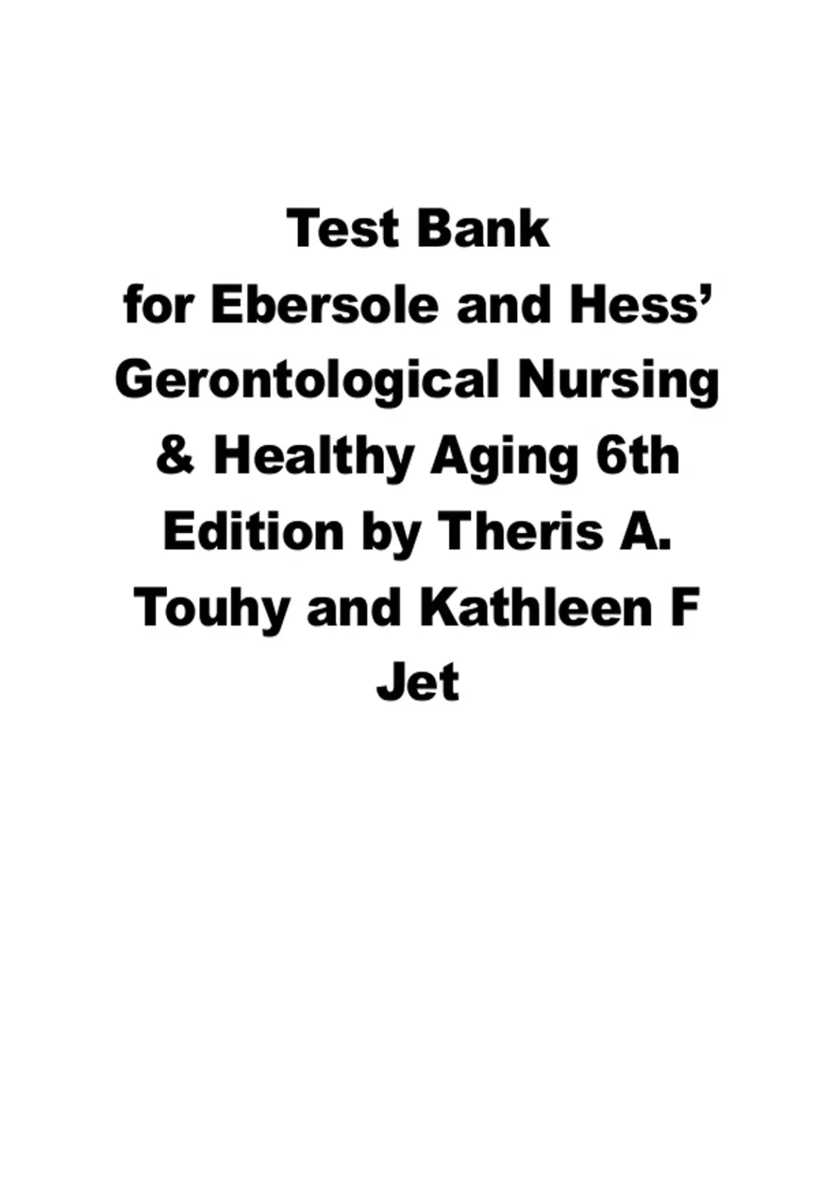 1 of 405top STUVIA SELLER-Test Bank for Ebersole and Hess’ Gerontological Nursing & Healthy Aging 6th Edition by Theris A. Touhy andPage