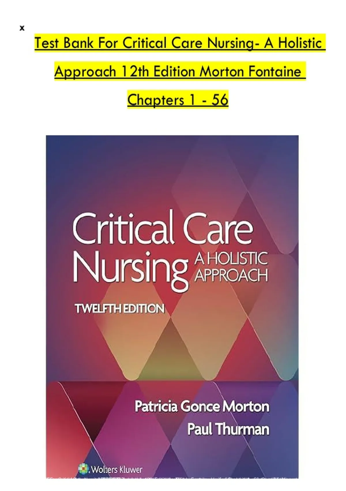 Test Bank For Critical Care Nursing- A Holistic
