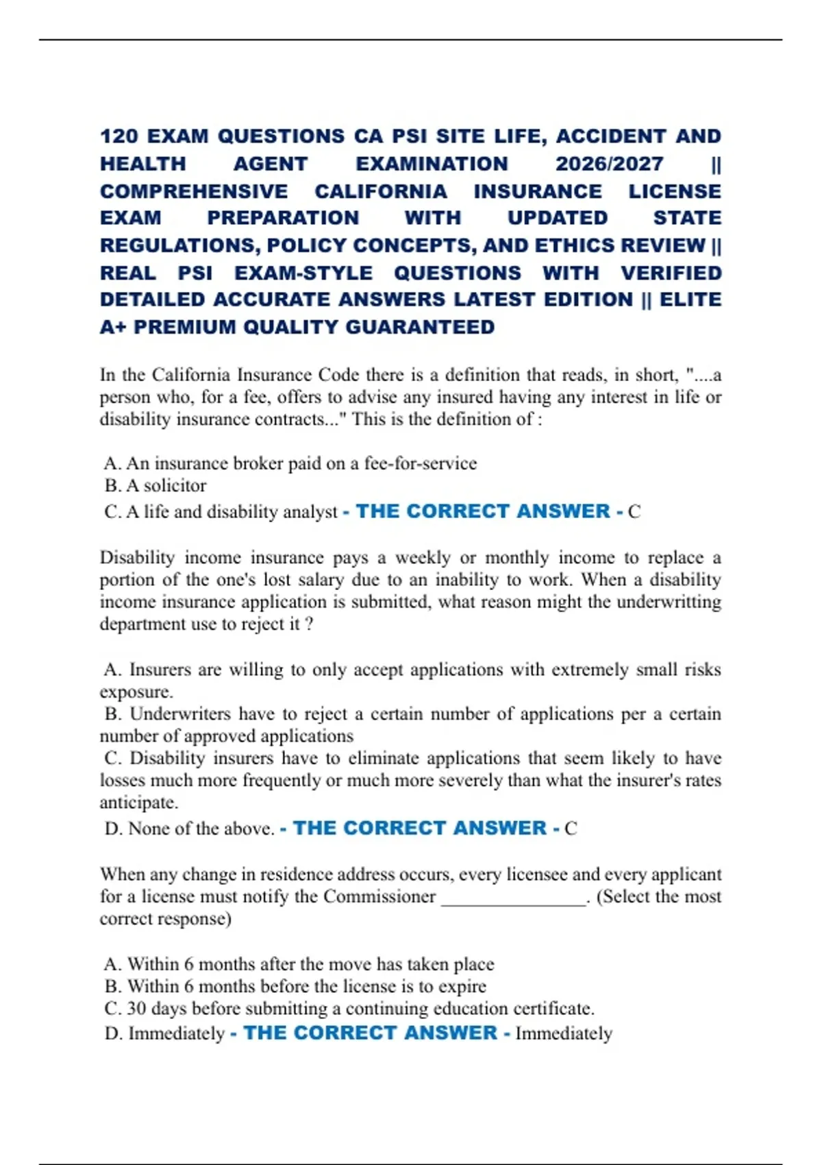 C. A life and disability analyst - THE CORRECT ANSWER - C
