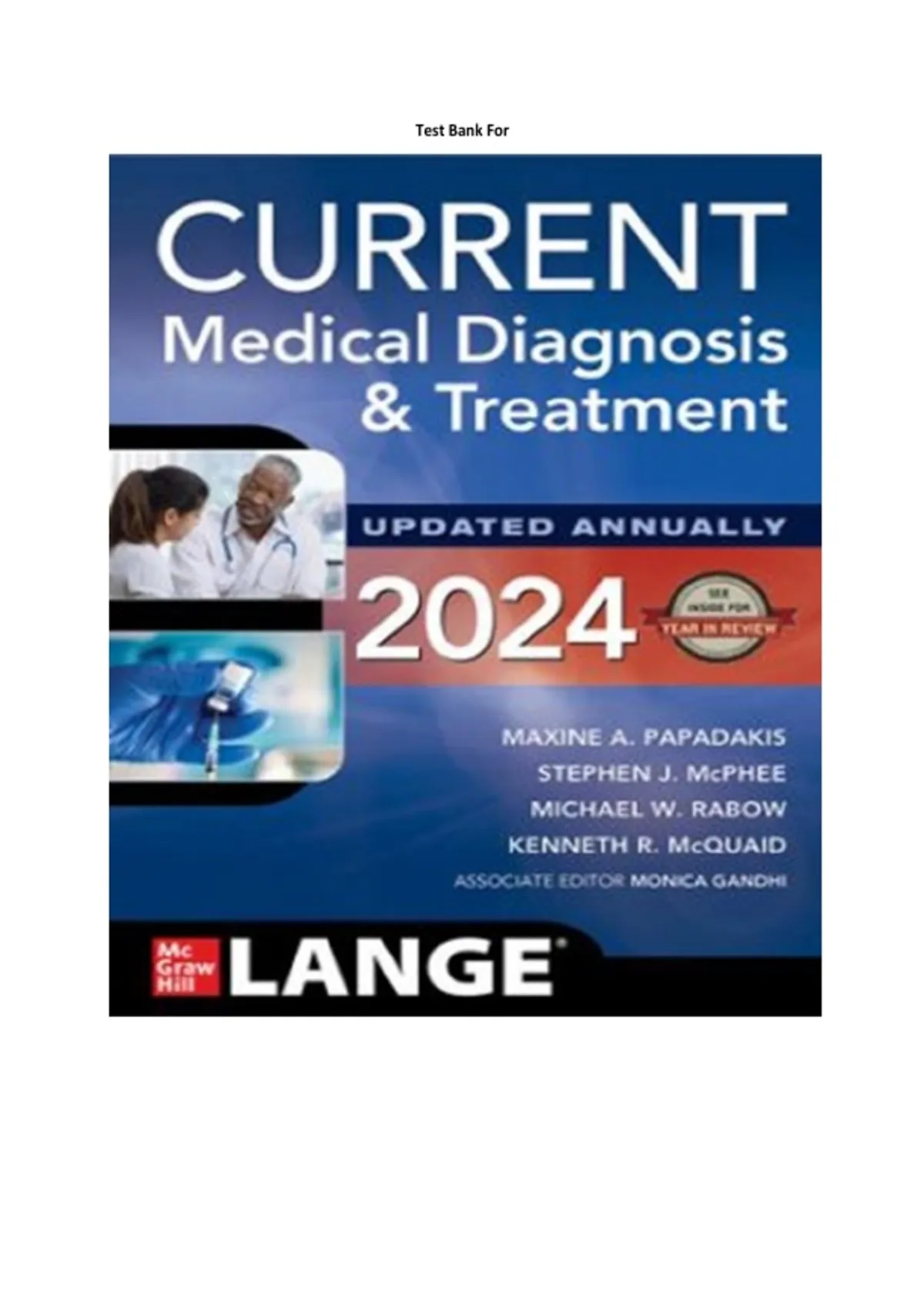 Current Medical Diagnosis and Treatment 63rd Edition 2024 Test Bank Maxine Papadakis Stephen McPhee Verified Chapters 1-42 Complete Newest Version 2025/ 2026 with Solution