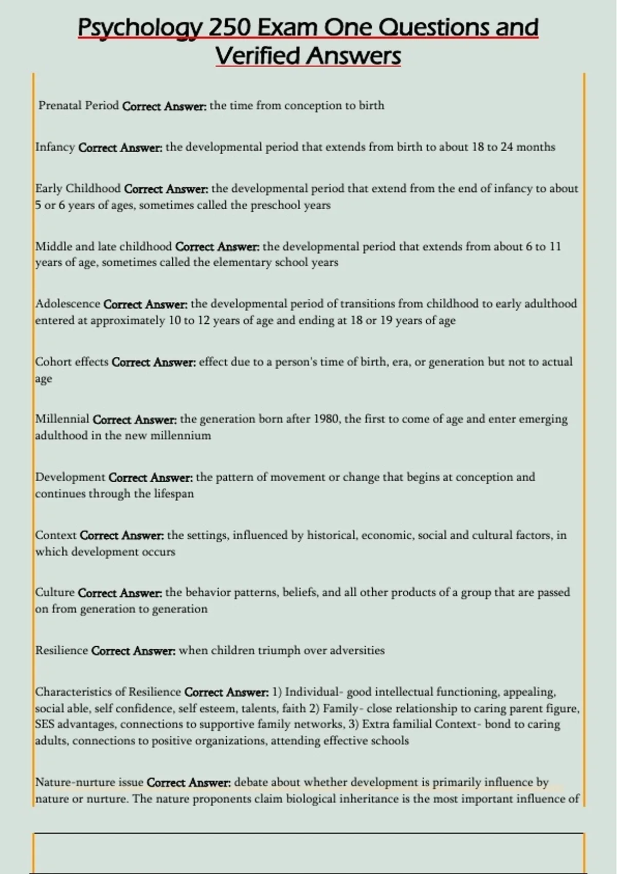 Resilience Correct Answer: when children triumph over adversities