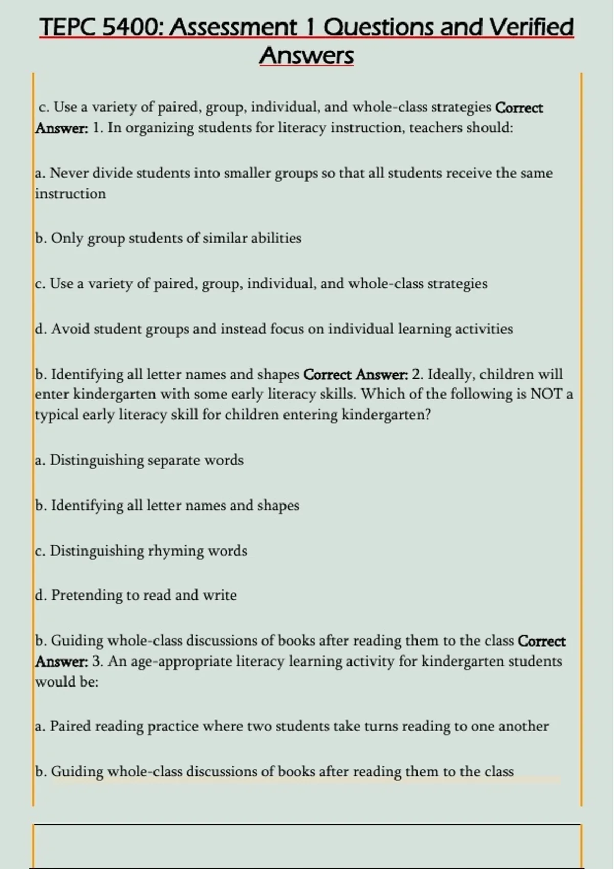 Answer: 1. In organizing students for literacy instruction, teachers should: