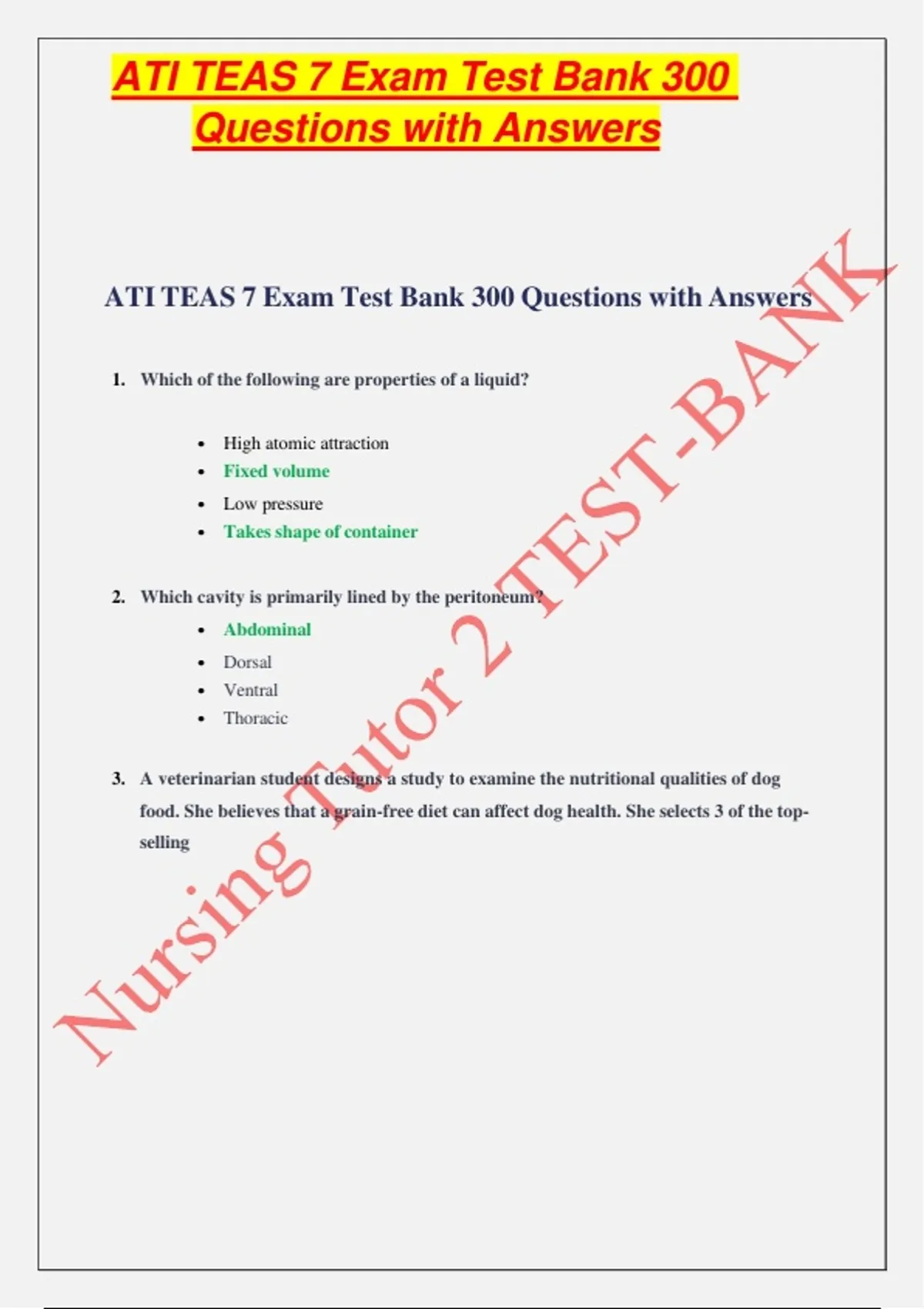 ATI TEAS 7 Exam Test Bank 300 Questions with Answers