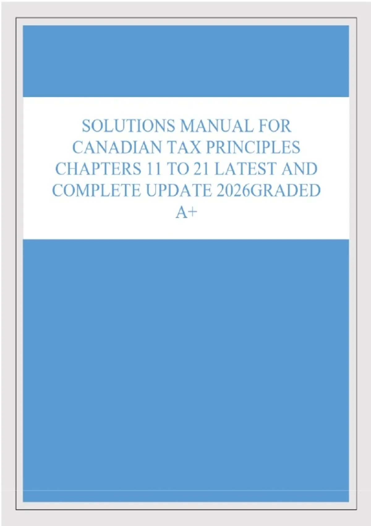 SOLUTIONS MANUAL FOR CANADIAN TAX PRINCIPLES CHAPTERS 11 TO 21 LATEST AND COMPLETE UPDATE 2026 GRADED A+..