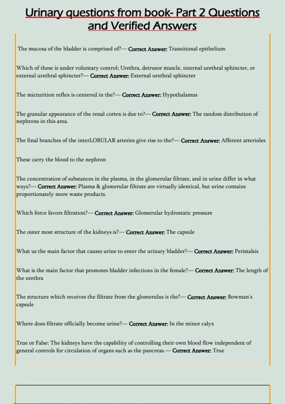 Urinary questions from book- Part 2 Questions