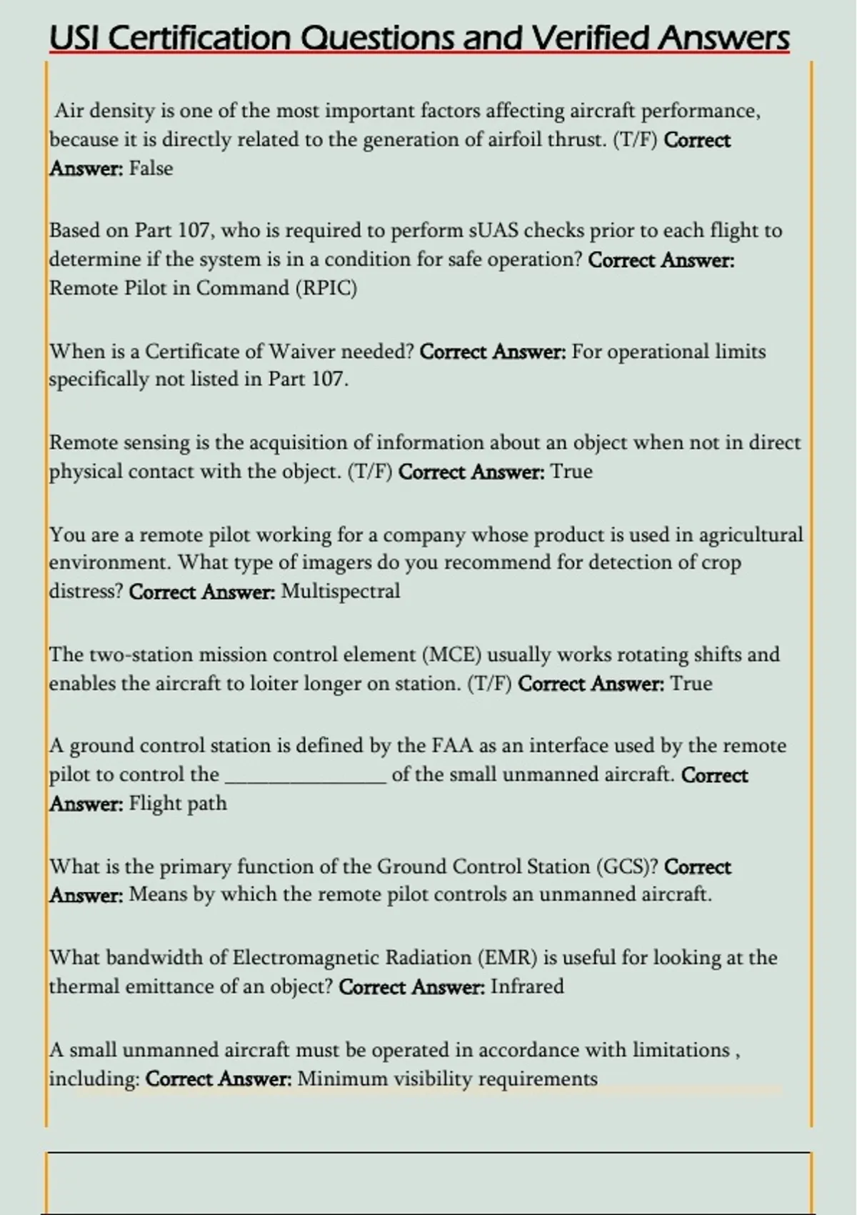 USI Certification Questions and Verified Answers