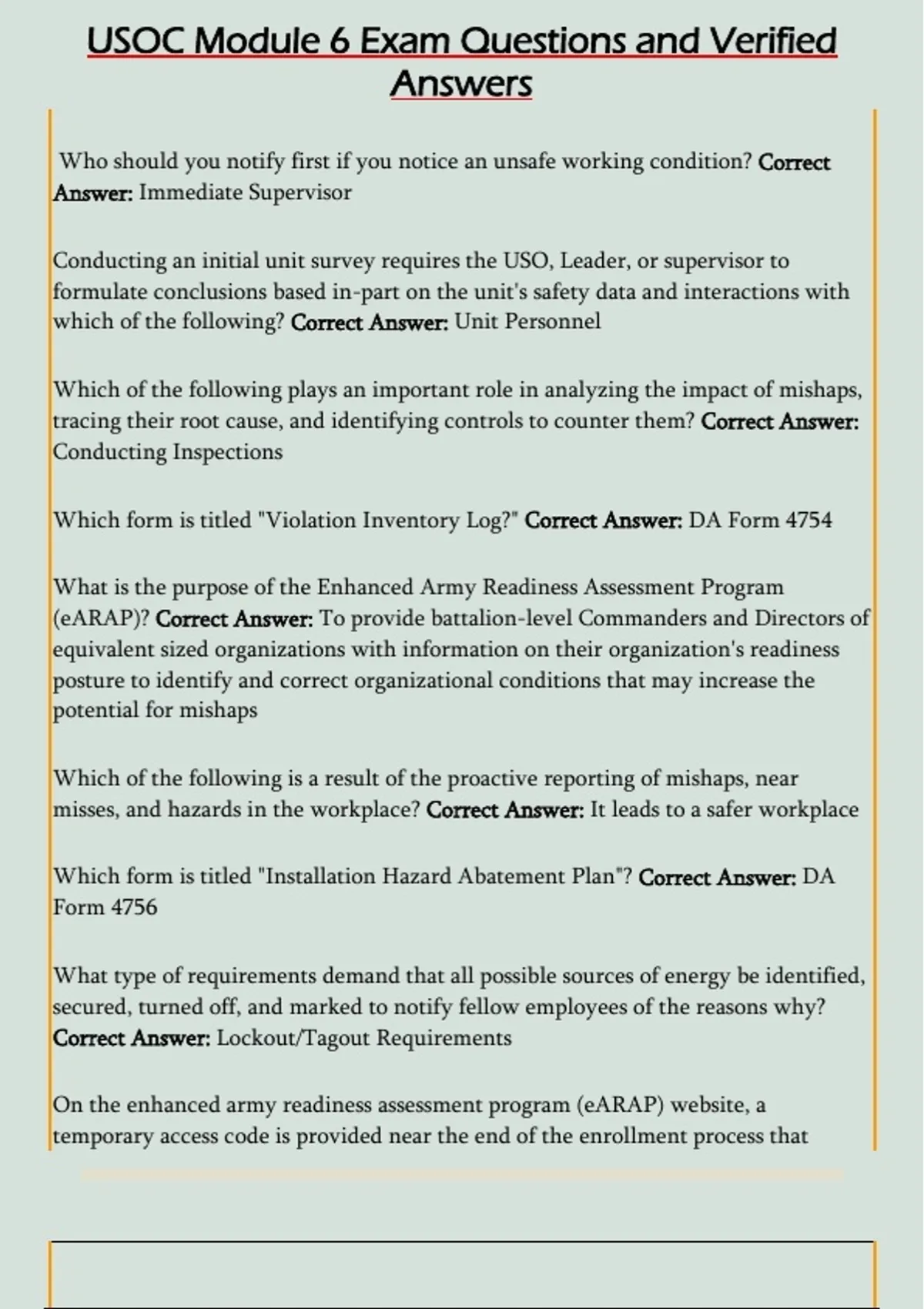 USOC Module 6 Exam Questions and Verified