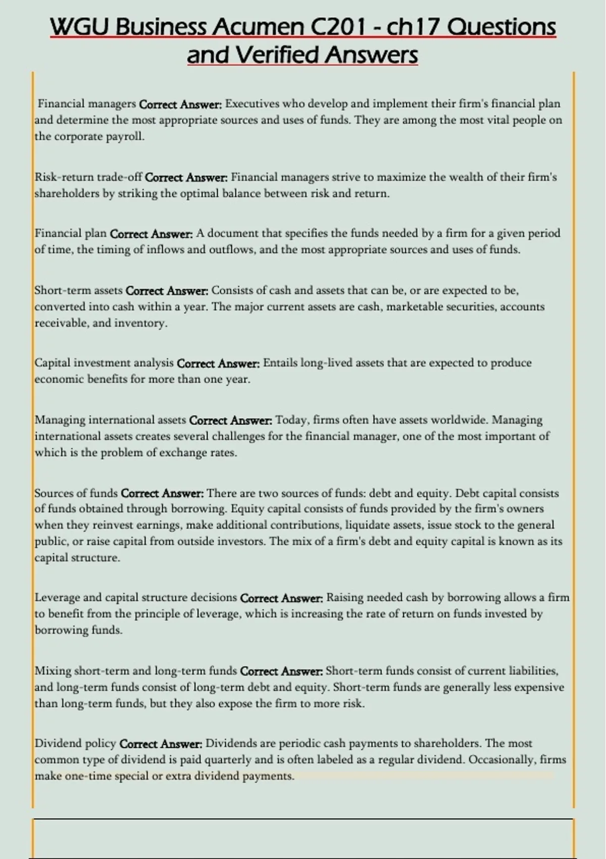 WGU Business Acumen C201 - ch17 Questions