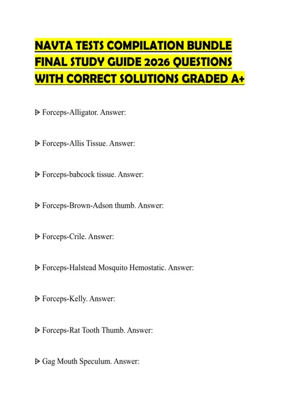 NAVTA TESTS COMPILATION BUNDLE FINAL STUDY GUIDE 2026 QUESTIONS WITH CORRECT SOLUTIONS GRADED A+