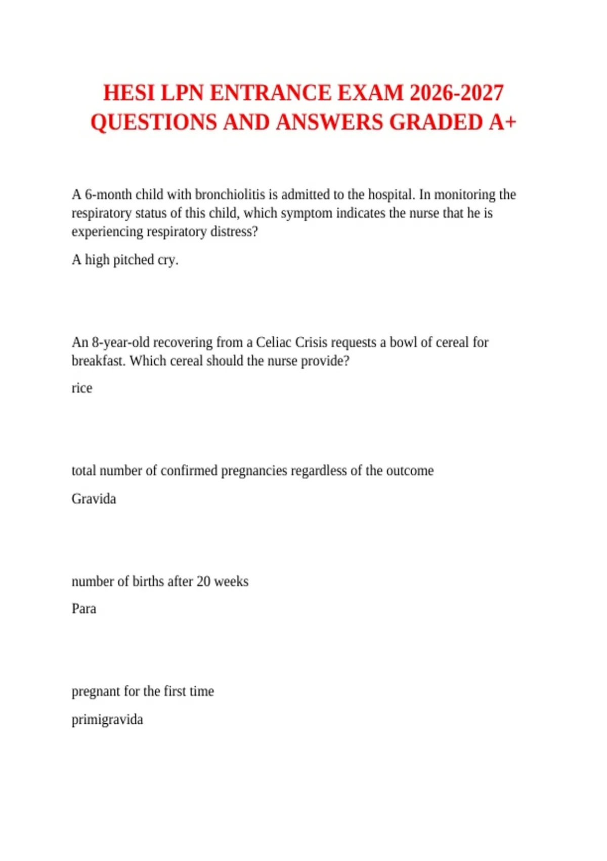 HESI LPN ENTRANCE EXAM QUESTIONS AND ANSWERS GRADED A+
