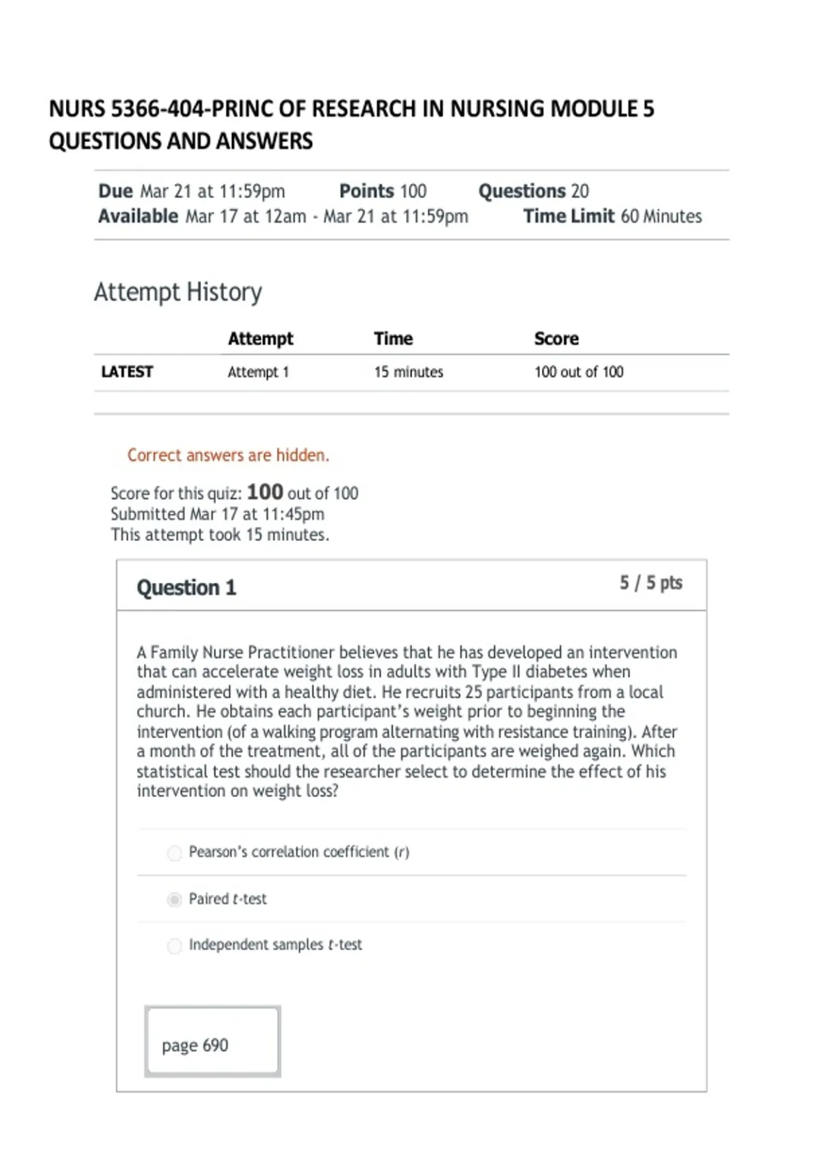 NURS 5366-404-PRINC OF RESEARCH IN NURSING MODULE 5 QUESTIONS AND ANSWERS - UTA