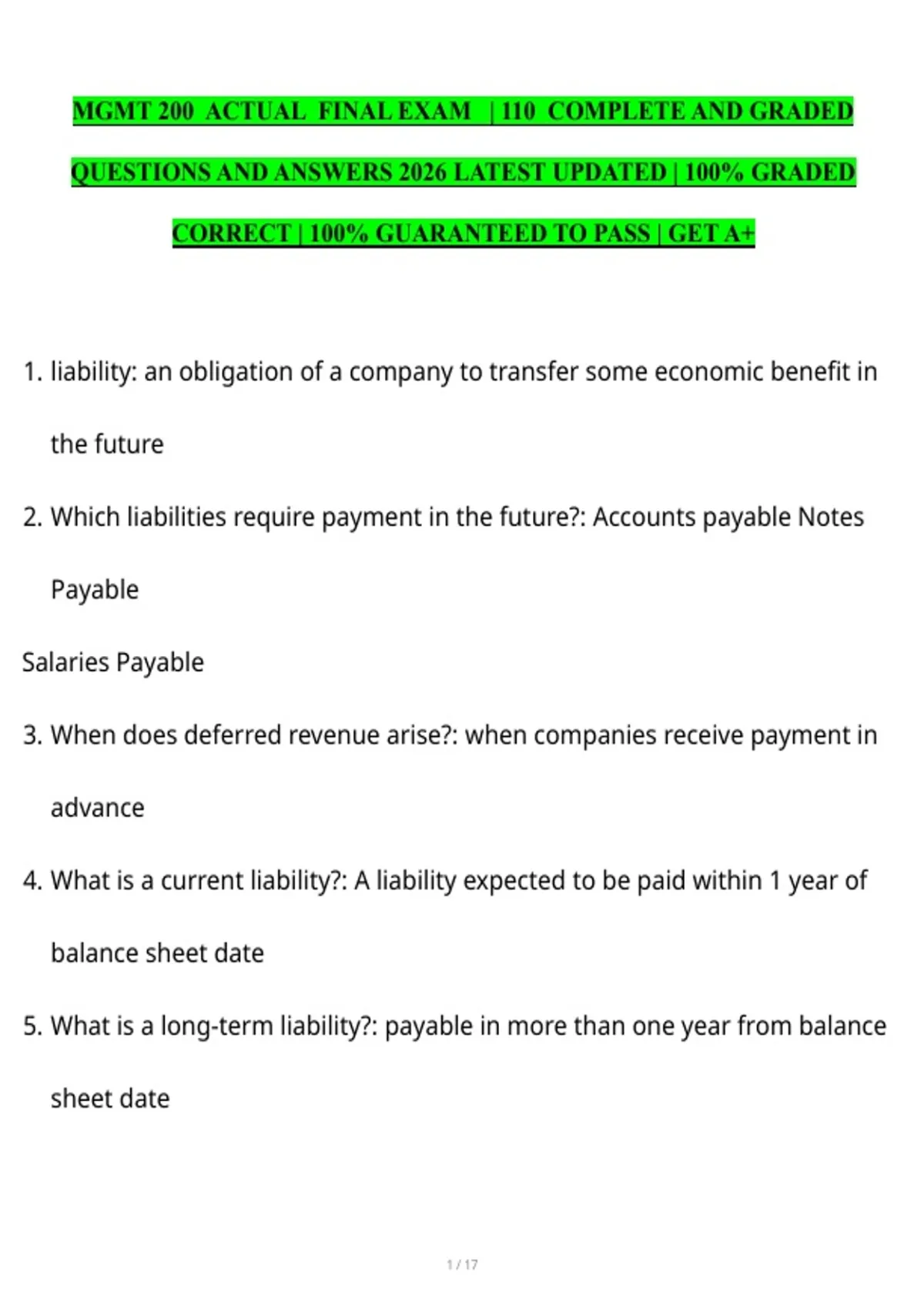 5. What is a long-term liability?: payable in more than one year from balance
