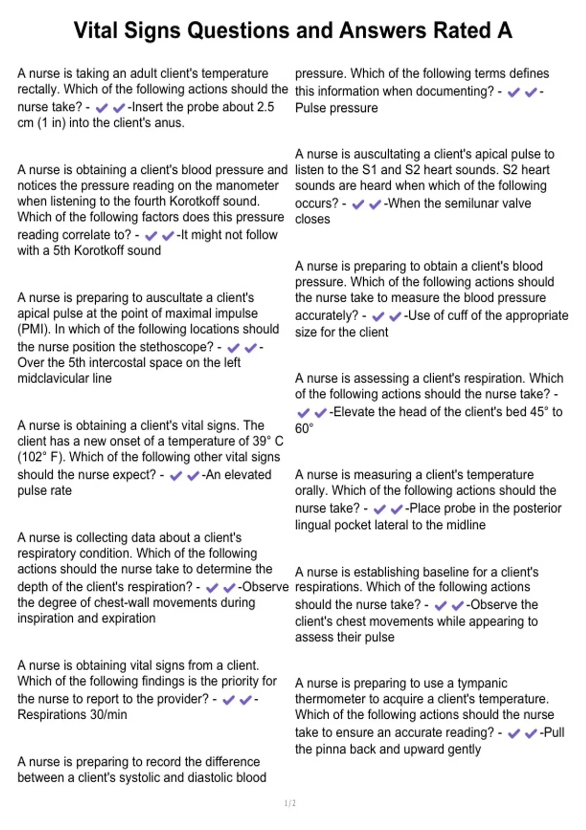 apical pulse at the point of maximal impulse accurately? - -Use of cuff of the appropriate