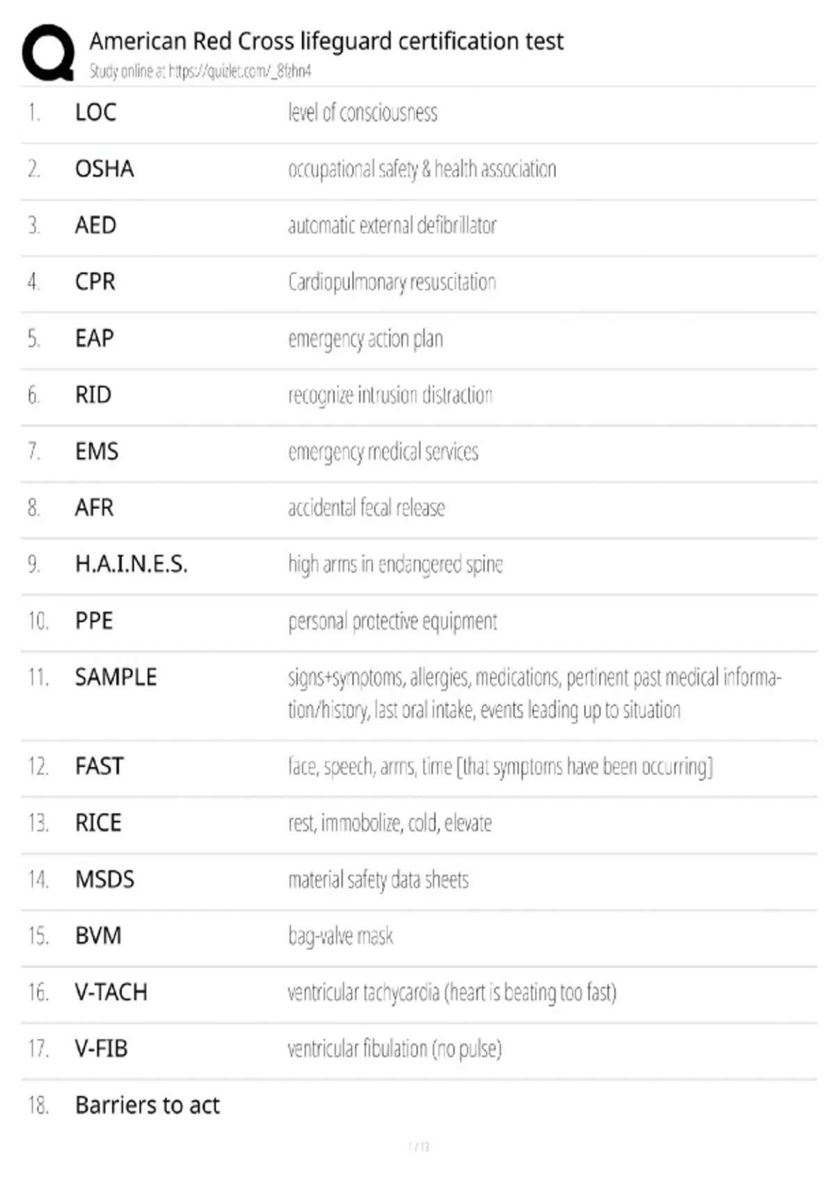 Prepare for the American Red Cross Lifeguard Certification final exam with this comprehensive 2025 study guide and test bank. This resource covers all test sections: water rescue skills, surveillance, victim recognition, CPR/AED for the professional rescuer, first aid, and spinal injury management. Featuring skill checklists, emergency action plan scenarios, and practice exams, it helps candidates master the knowledge and decision-making needed to pass the written test and perform confidently in emergencies.
