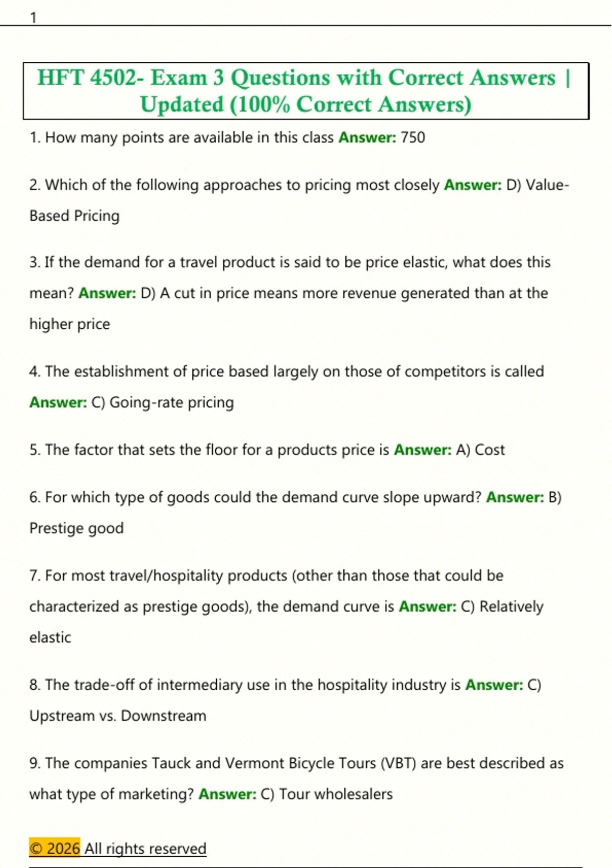 1. How many points are available in this class Answer: 750