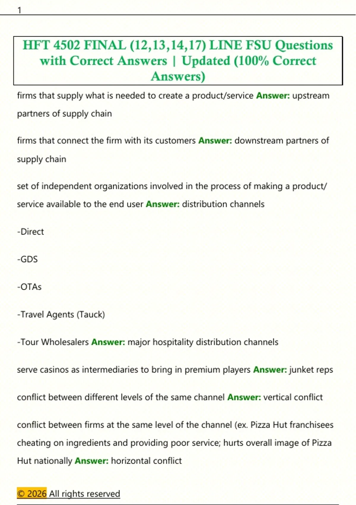 HFT 4502 FINAL (12,13,14,17) LINE FSU Questions