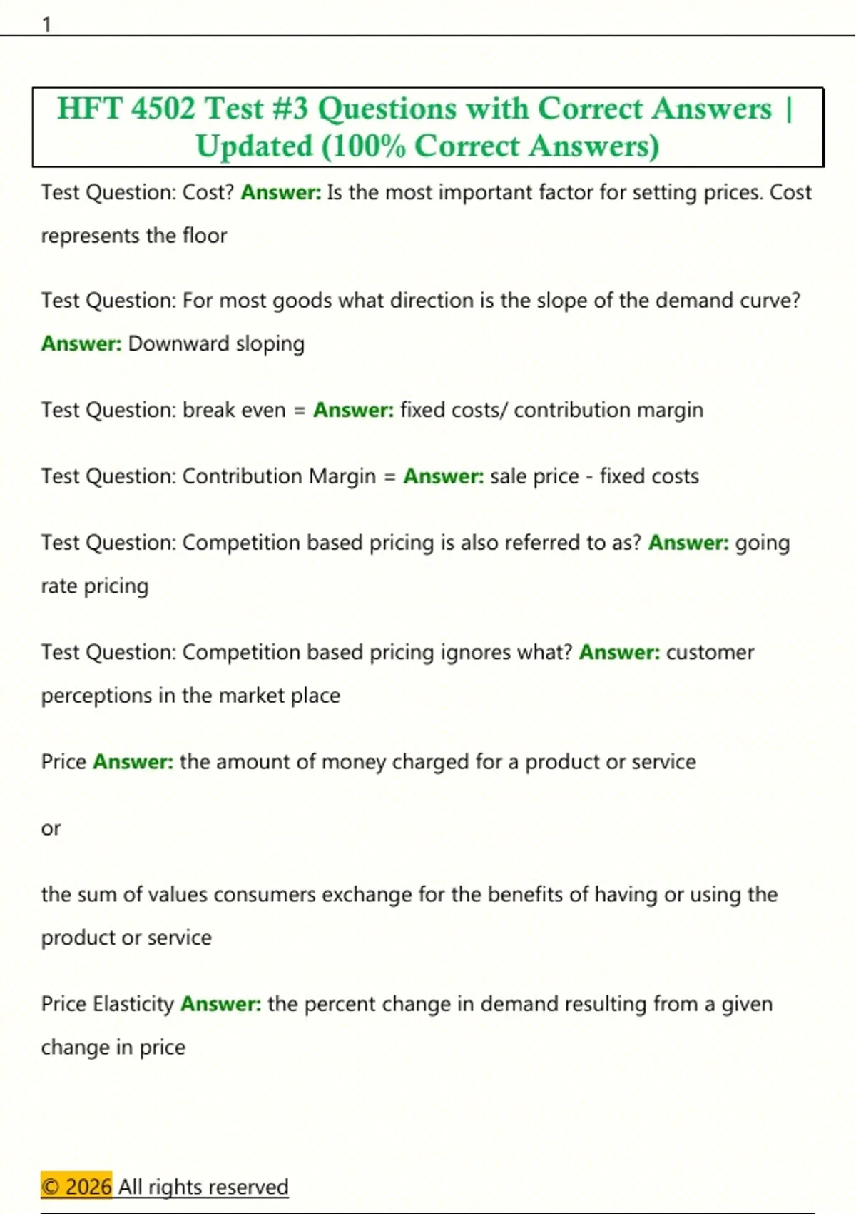 Test Question: Cost? Answer: Is the most important factor for setting prices. Cost