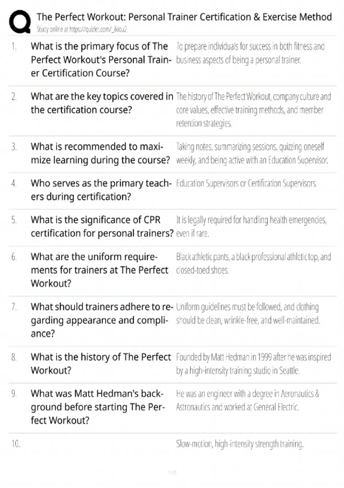 The Perfect Workout Personal Trainer Certification / 20-Minute Slow Motion Strength / Study Guide & Test Bank / Score 100% / 2025 Update