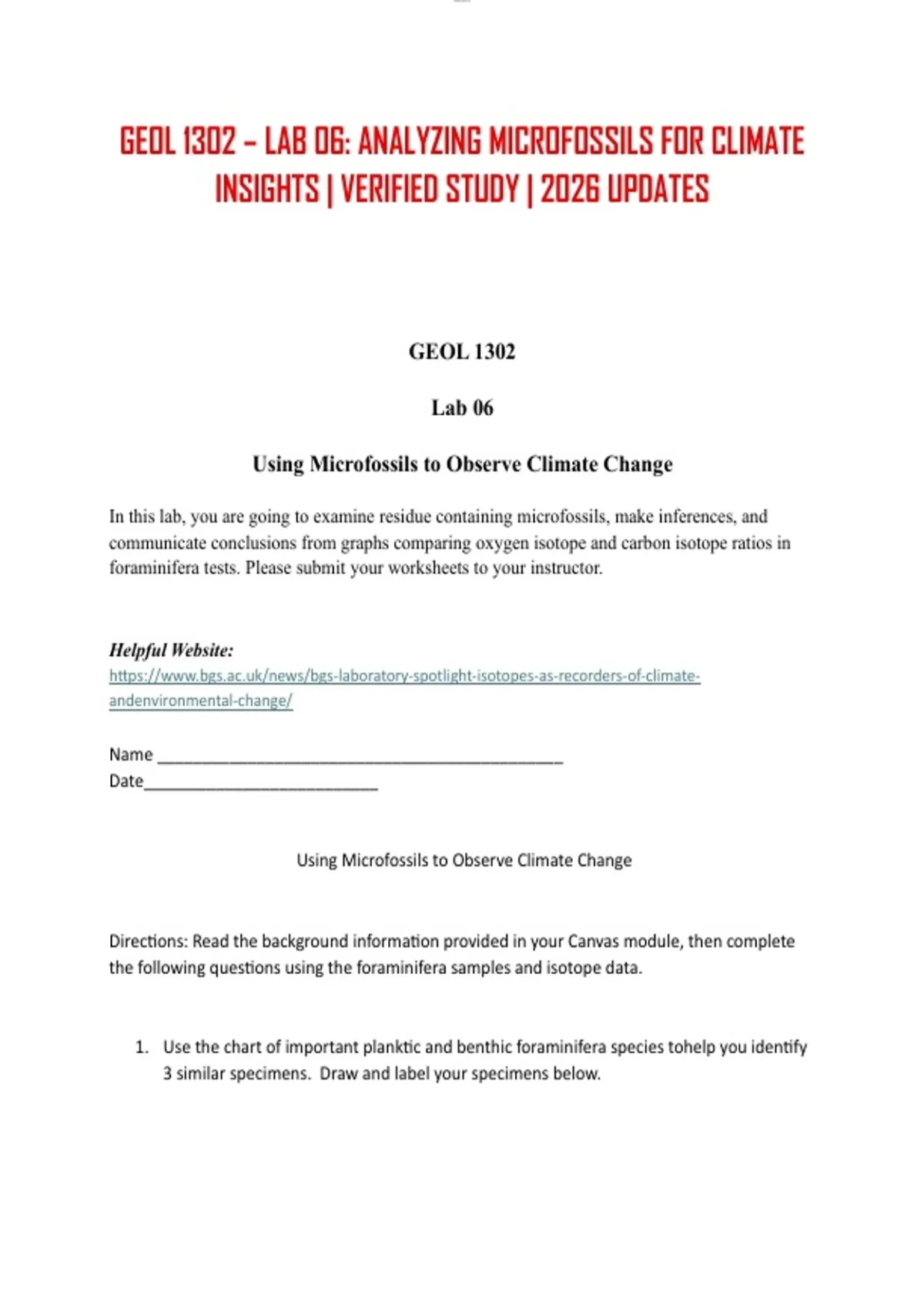 GEOL 1302 – LAB 06: ANALYZING MICROFOSSILS FOR CLIMATE INSIGHTS | VERIFIED STUDY | 2026 UPDATES