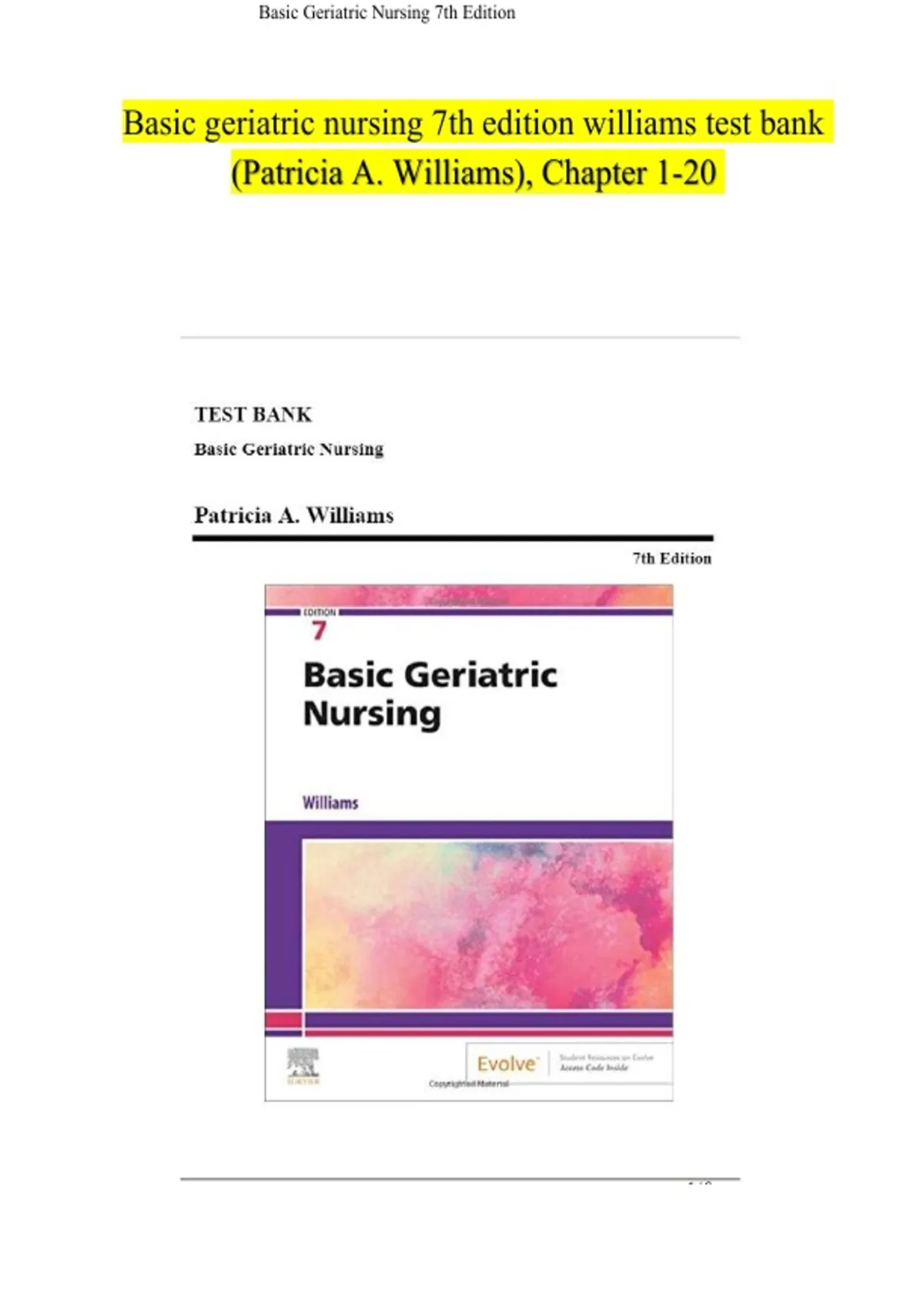 Basic geriatric nursing 7th edition williams test bank (Patricia A. Williams), Chapter 1-20
