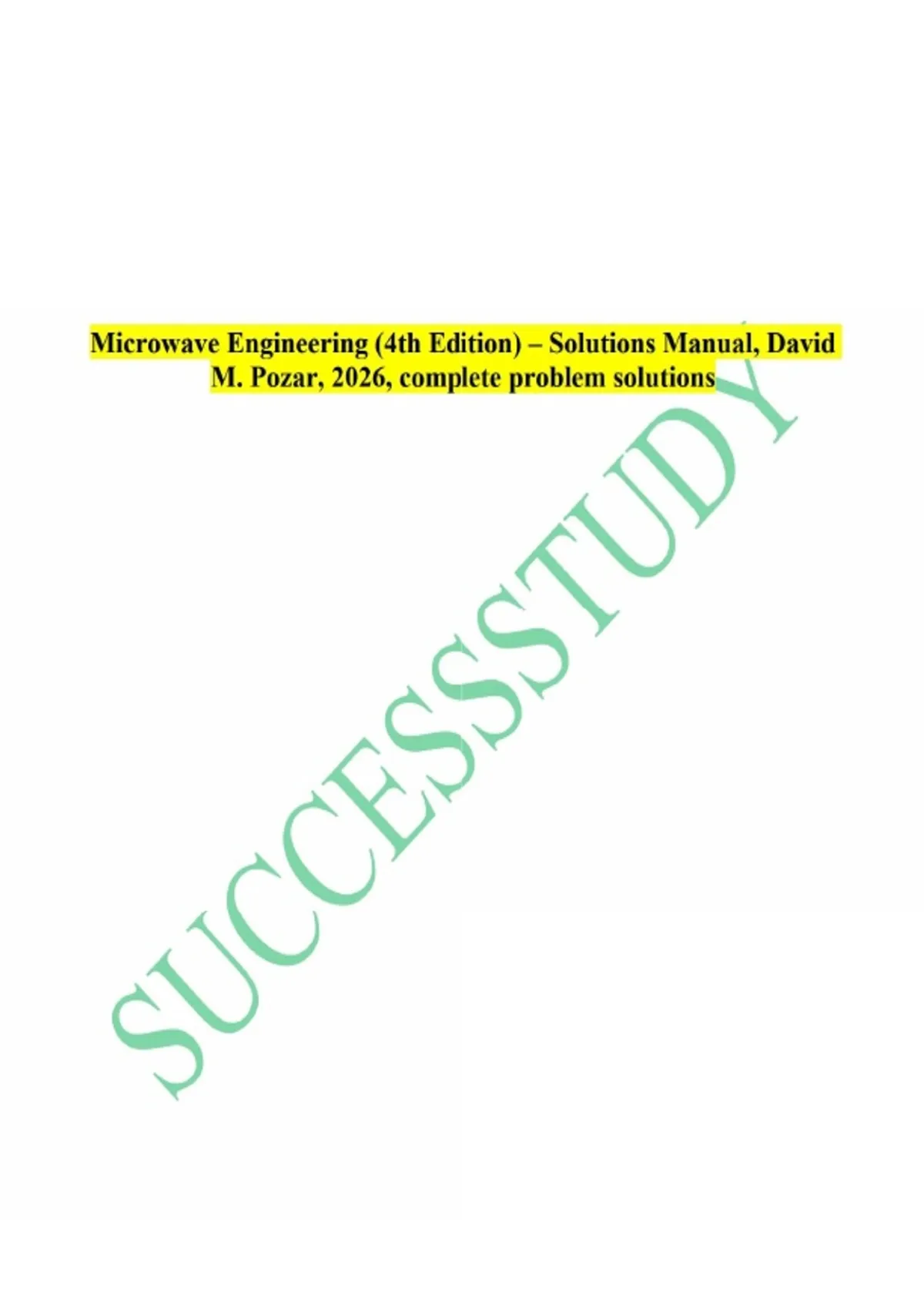 Microwave Engineering (4th Edition) – Solutions Manual, David M. Pozar, 2026, complete problem solutions.
