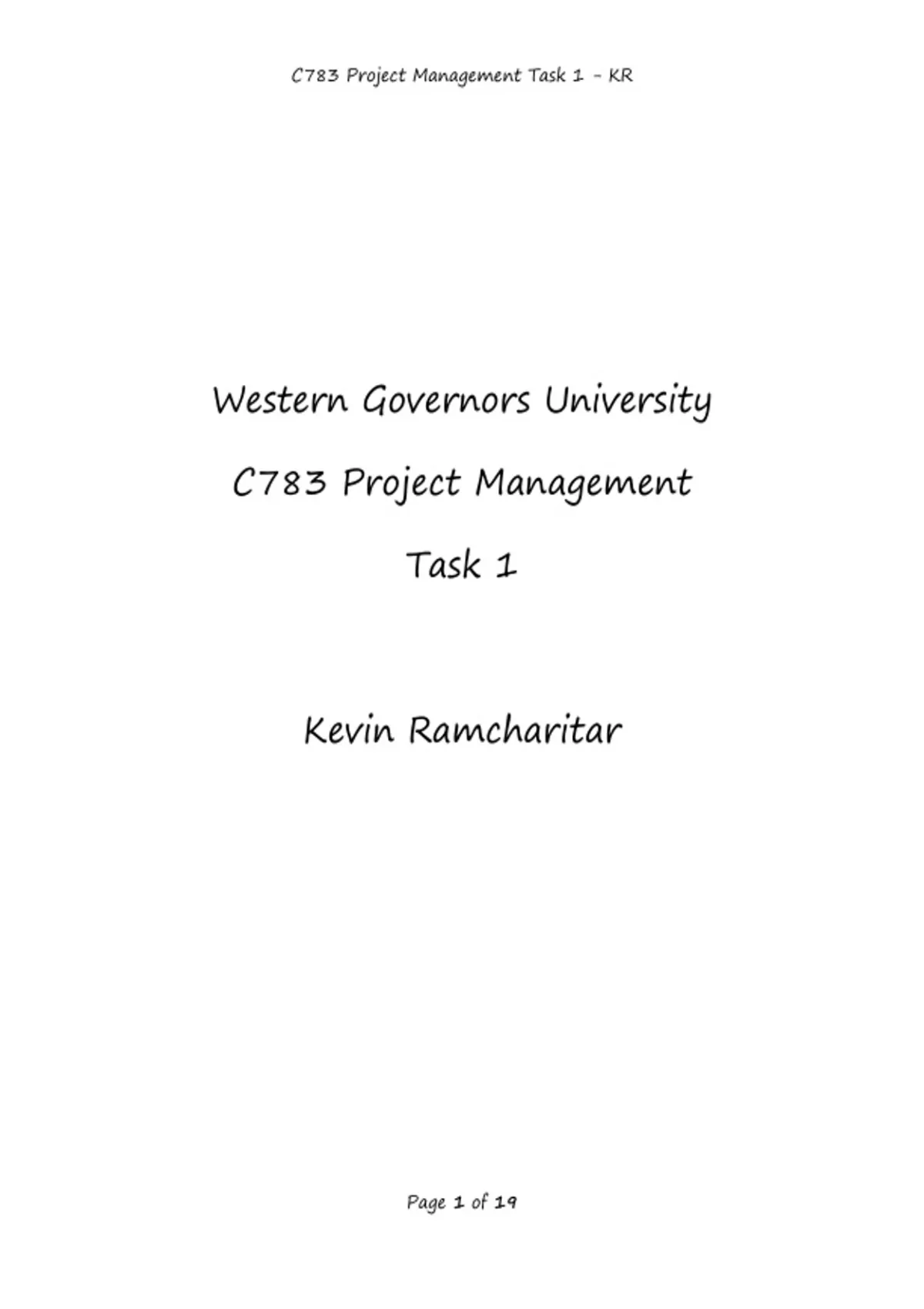 WGU C783 Task 1: Initiating and Planning the Project Latest Update with complete solutions