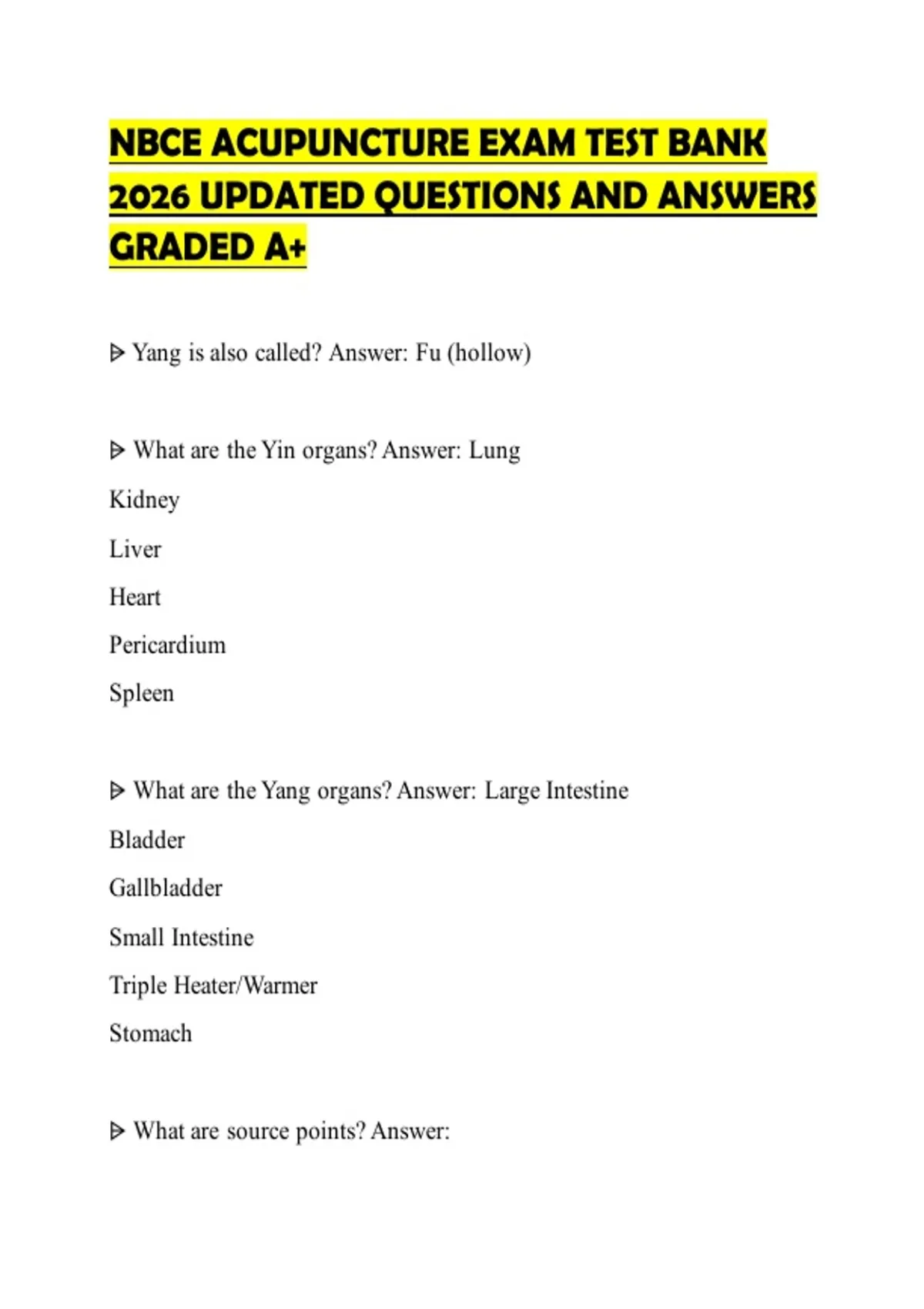 NBCE ACUPUNCTURE EXAM TEST BANK 2026 UPDATED QUESTIONS AND ANSWERS GRADED A+