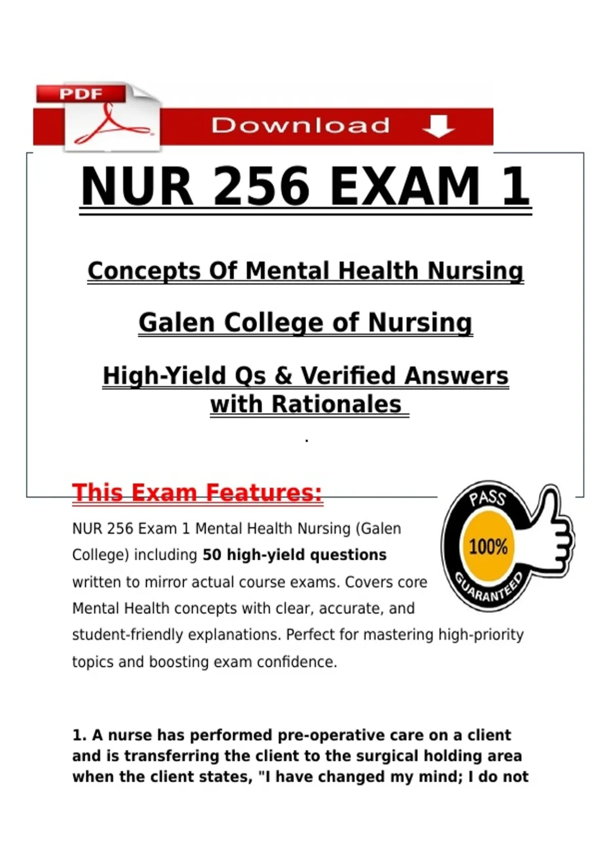 NUR 256 Exam 1 Mental Health Nursing (Galen