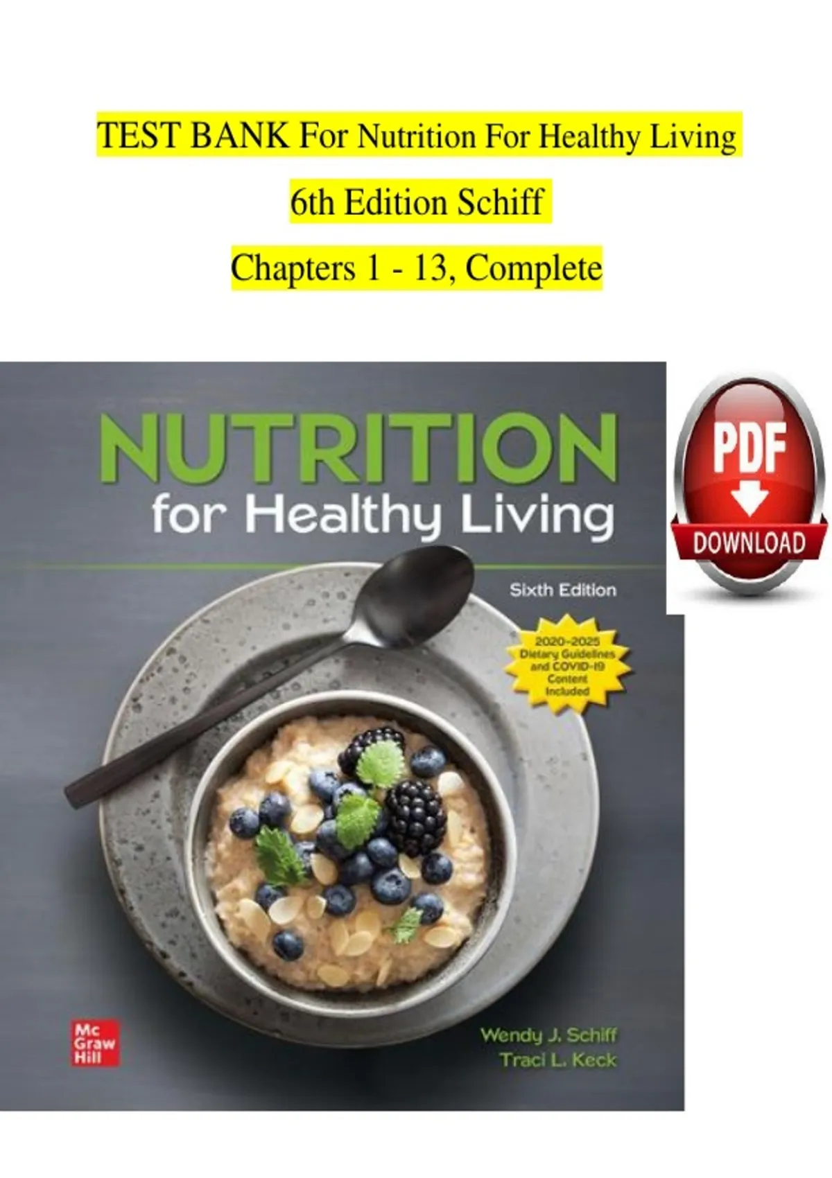 Prepare confidently for nutrition exams, quizzes, and coursework with this comprehensive Test Bank for Nutrition for Healthy Living, 6th Edition — fully updated for 2026! This essential academic resource includes a broad range of practice questions paired with 100% accurate answers, aligned with the textbook’s content and structured to reflect real classroom and exam formats used in nutrition, dietetics, health sciences, nursing, and allied health programs. Ideal for students aiming to master healthy living principles, this test bank reinforces key topics such as: Fundamentals of nutrition and nutrient functions Dietary guidelines and food choices Energy balance and weight management Macronutrient and micronutrient metabolism Lifecycle nutrition and special populations Nutrition and chronic disease prevention Food safety and public health nutrition Behavior change and health promotion strategies Whether you’re preparing for chapter quizzes, unit tests, midterms, finals, or professional board review, this test bank strengthens your understanding, enhances retention, and improves confidence in applying nutritional science concepts. Authors: Wendy J. Schiff (Author) Traci L. Keck