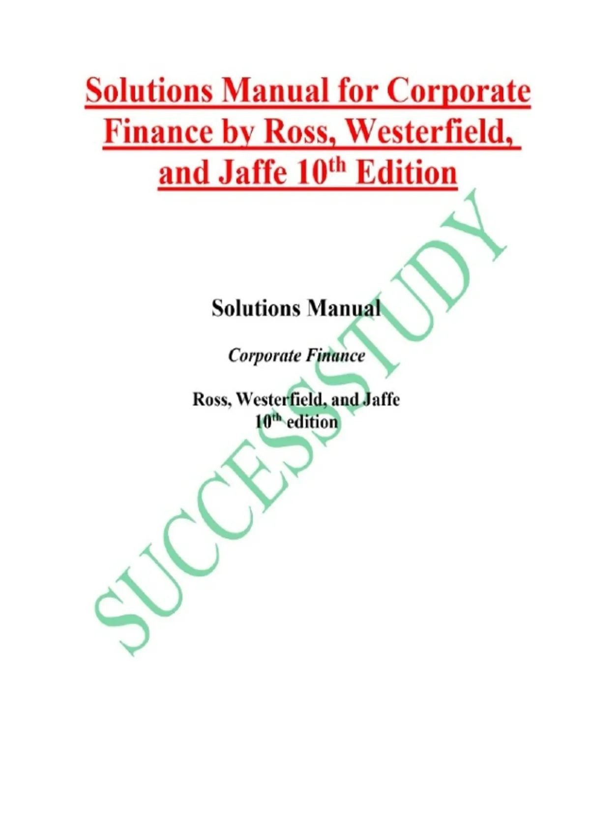Solutions Manual for Corporate Finance by Ross, Westerfield, and Jaffe 10th Edition..