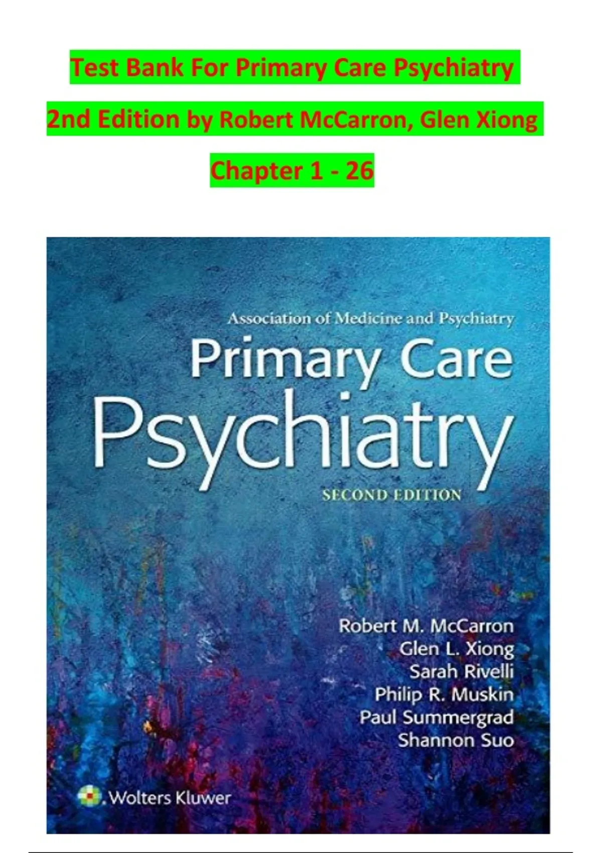 Test Bank For Primary Care Psychiatry 2nd Edition by Robert McCarron, Glen Xiong