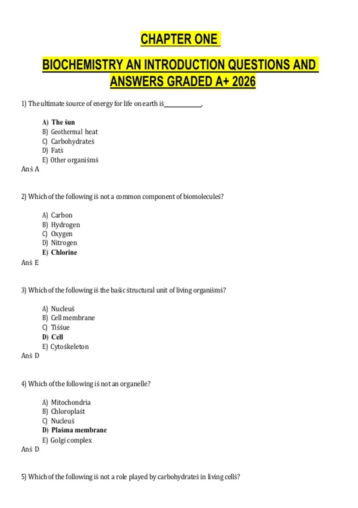BIOCHEMISTRY AN INTRODUCTION QUESTIONS AND ANSWERS GRADED A+ 2026