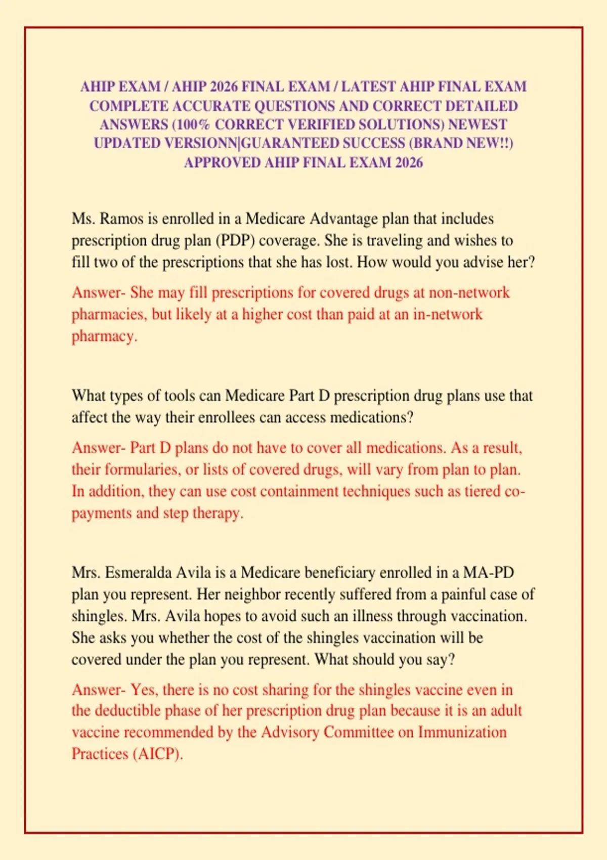 AHIP EXAM / AHIP 2026 FINAL EXAM / LATEST AHIP FINAL EXAM COMPLETE ACCURATE QUESTIONS AND CORRECT DETAILED ANSWERS (100% CORRECT VERIFIED SOLUTIONS) NEWEST UPDATED VERSIONN|GUARANTEED SUCCESS (BRAND NEW!!) APPROVED AHIP FINAL EXAM 2026