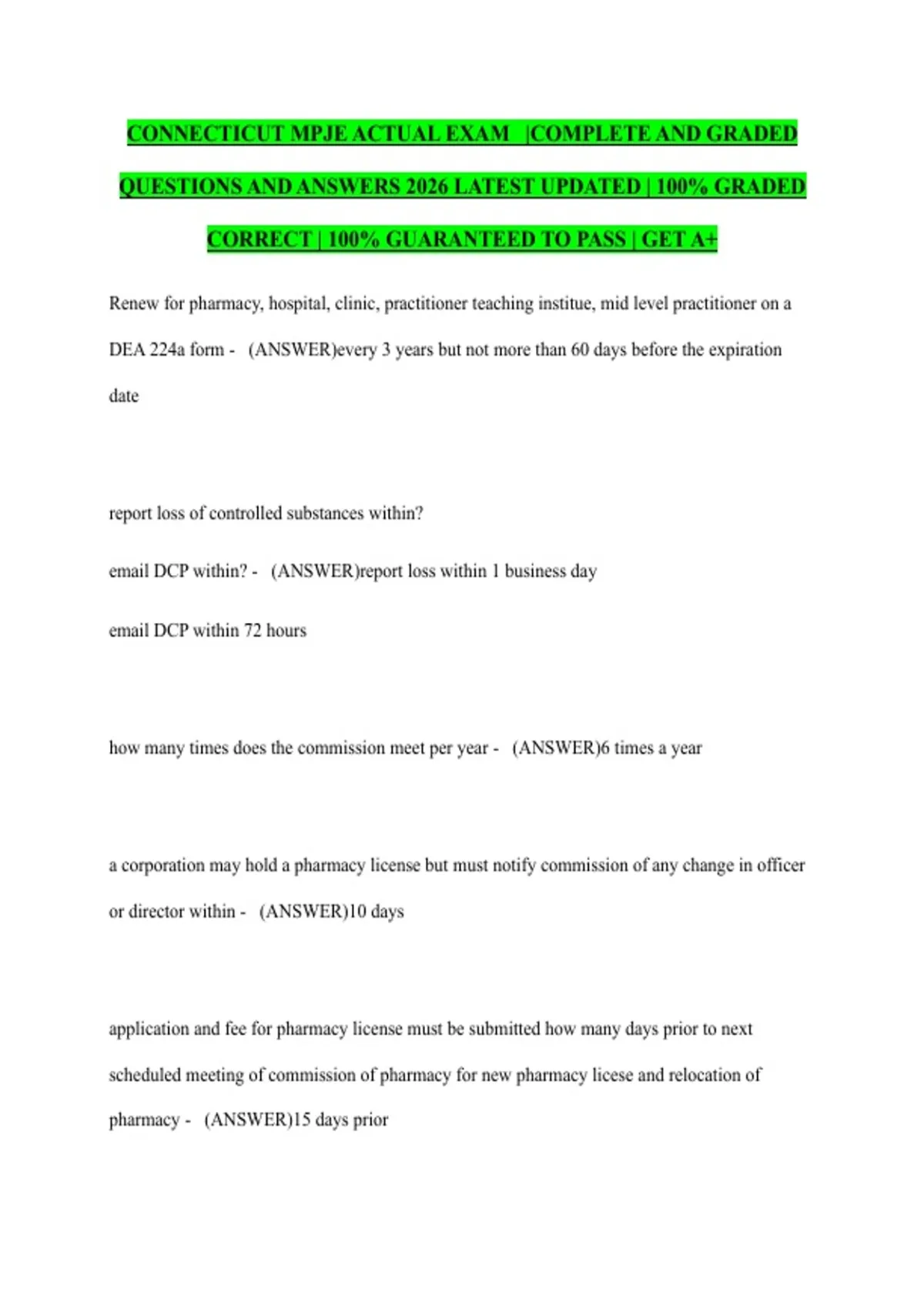 CONNECTICUT MPJE ACTUAL EXAM |COMPLETE AND GRADED QUESTIONS AND ANSWERS 2026 LATEST UPDATED | 100% GRADED CORRECT | 100% GUARANTEED TO PASS | GET A+
